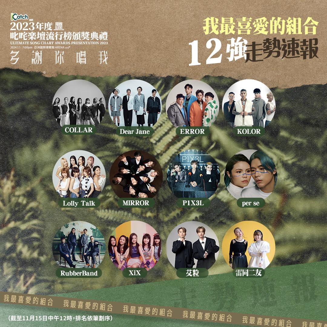 「我最喜愛的組合」方面,《造星》系列除了人氣男團MIRROR、ERROR、COLLAR和P1X3L外,還有獨立發展的女團Lolly Talk、《聲夢2》的XiX亦順利入圍,與樂隊Dear Jane、KOLOR和RubberBand,以及組合per se、艾粒、雷同二友同角逐最後十強位置。