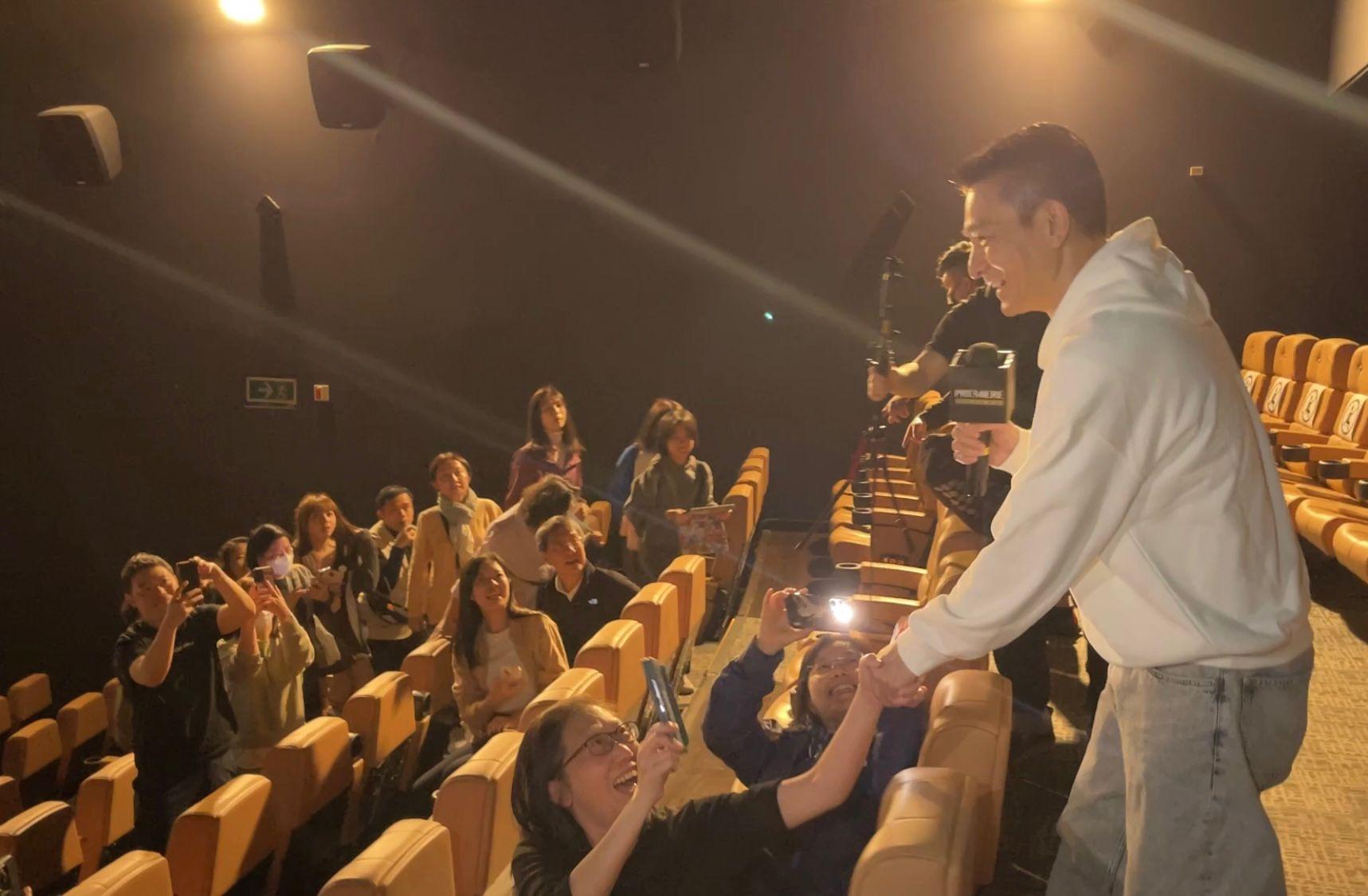 華仔繼開畫日後,昨晚連走三場再度現身戲院謝票。