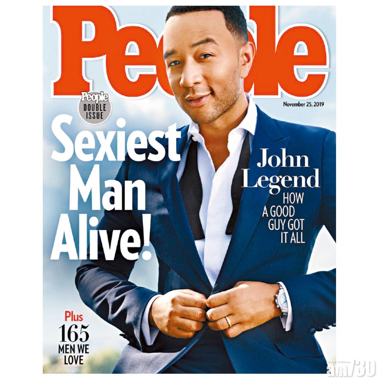 美國娛樂雜誌《People》2019年度最性感男士已有結果,由2017年最性感男士、鄉謠天王Blake Shelton公布,騷靈天王John Legend成為得主。其實兩人曾在選秀節目《完美Sing戰》(The Voice)合作做評判。John Legend表示 : 「得知當選後,我興奮又害怕,同時壓力好大,因為成為最性感男士後,有好多人留意我是否值得當選。」John的模特兒太太Chrissy Teigen在Twitter留言有事宣布,但並非自己有喜,而是老公成為最性感男士。