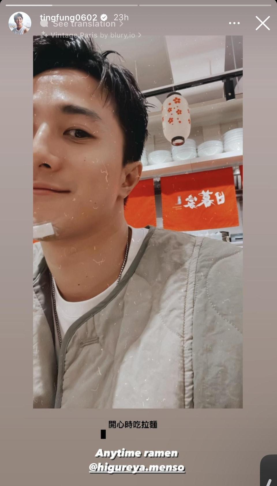 黃庭鋒曾在IG打卡,透露自己身在AK的拉麵店。