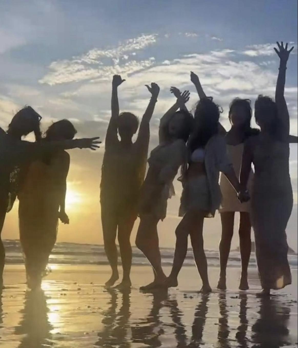 昨日,阿佘在社交網分享花絮片段,片中見她們在香港機場集合,企正C位的阿佘就跑向鏡頭,畫面旋即轉到泰國,她再帶埋七姊妹到了泰國沙灘,眾人都手舞足蹈相當興奮,並換上一身泳裝上陣,不過由於環境太黑,未能清楚見到魔女們的弗爆身材,其後,心情大靚的阿佘再上載一張自拍泳照 ,相中見她頭髮全濕,但就僅露出迷人鎖骨,相當吊癮,網民都紛紛留言要求全身泳照。