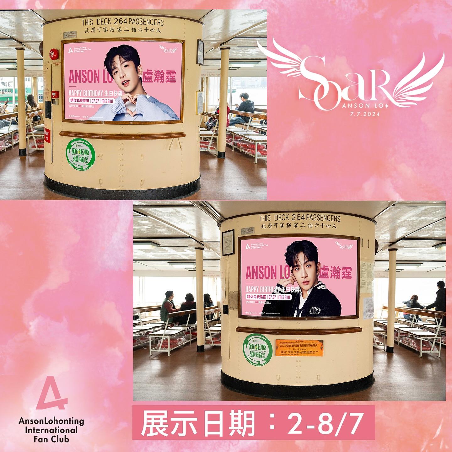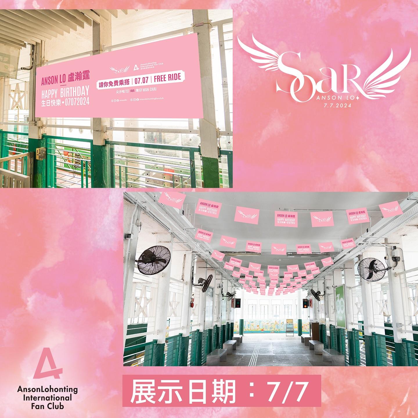 今年的7月7日將會再次舉辦「天星小輪免費乘搭日」,連續第三年邀請全港市民免費乘搭天星小輪,今年航線為尖沙咀往返灣仔。此外尖沙咀碼頭外牆將會換Anson Lo生日主題巨型廣告,尖沙咀碼頭和灣仔碼頭的等候區、樓梯、入閘機及售票機等地方均設有不同主題佈置,歡迎大家前來參觀和打卡。
