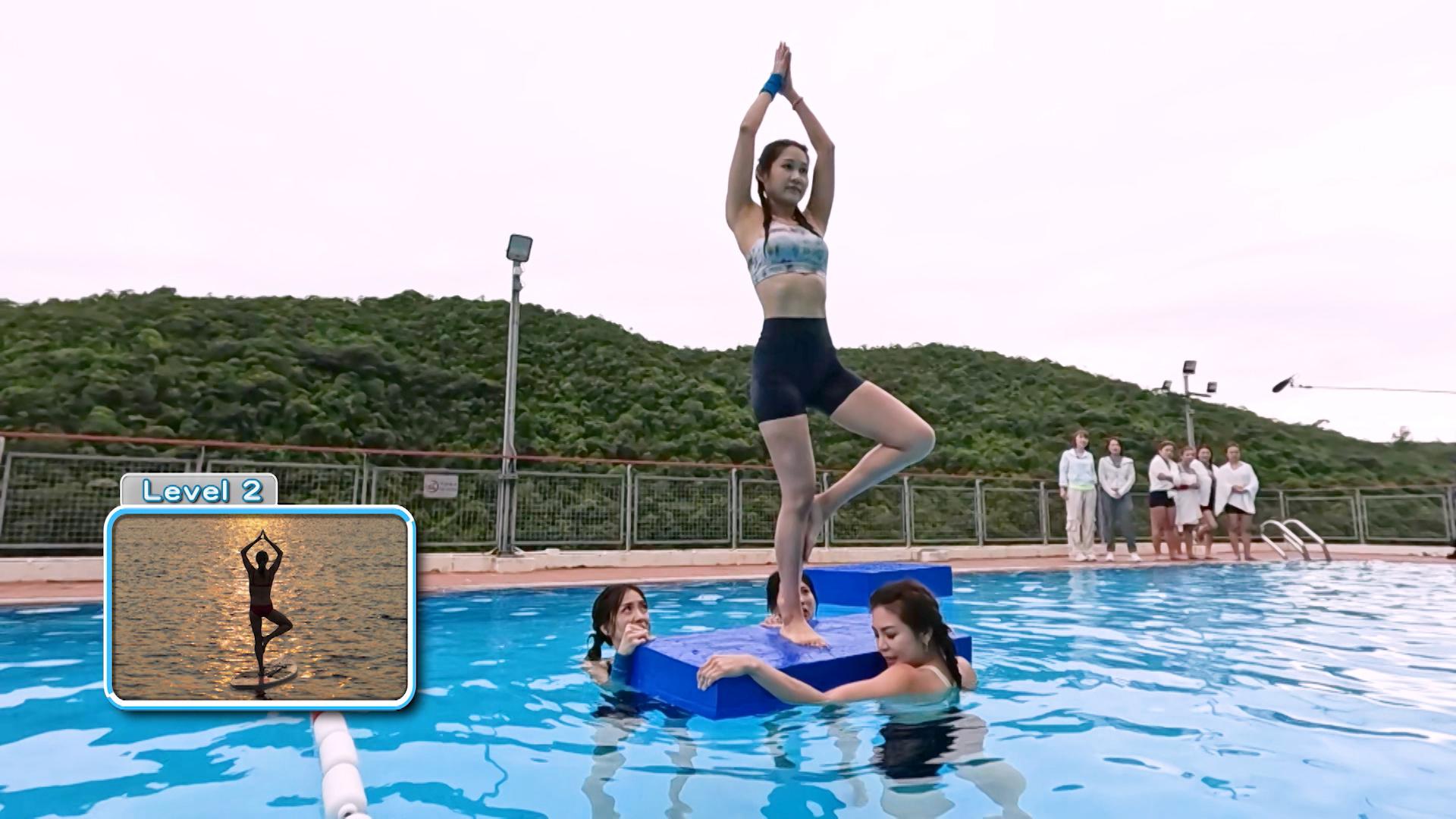陳雅慧(仙迪)在浮板上做出瑜伽動作