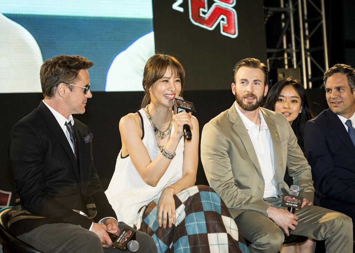 秀賢與羅拔唐尼、基斯伊雲斯宣傳《復仇者》。