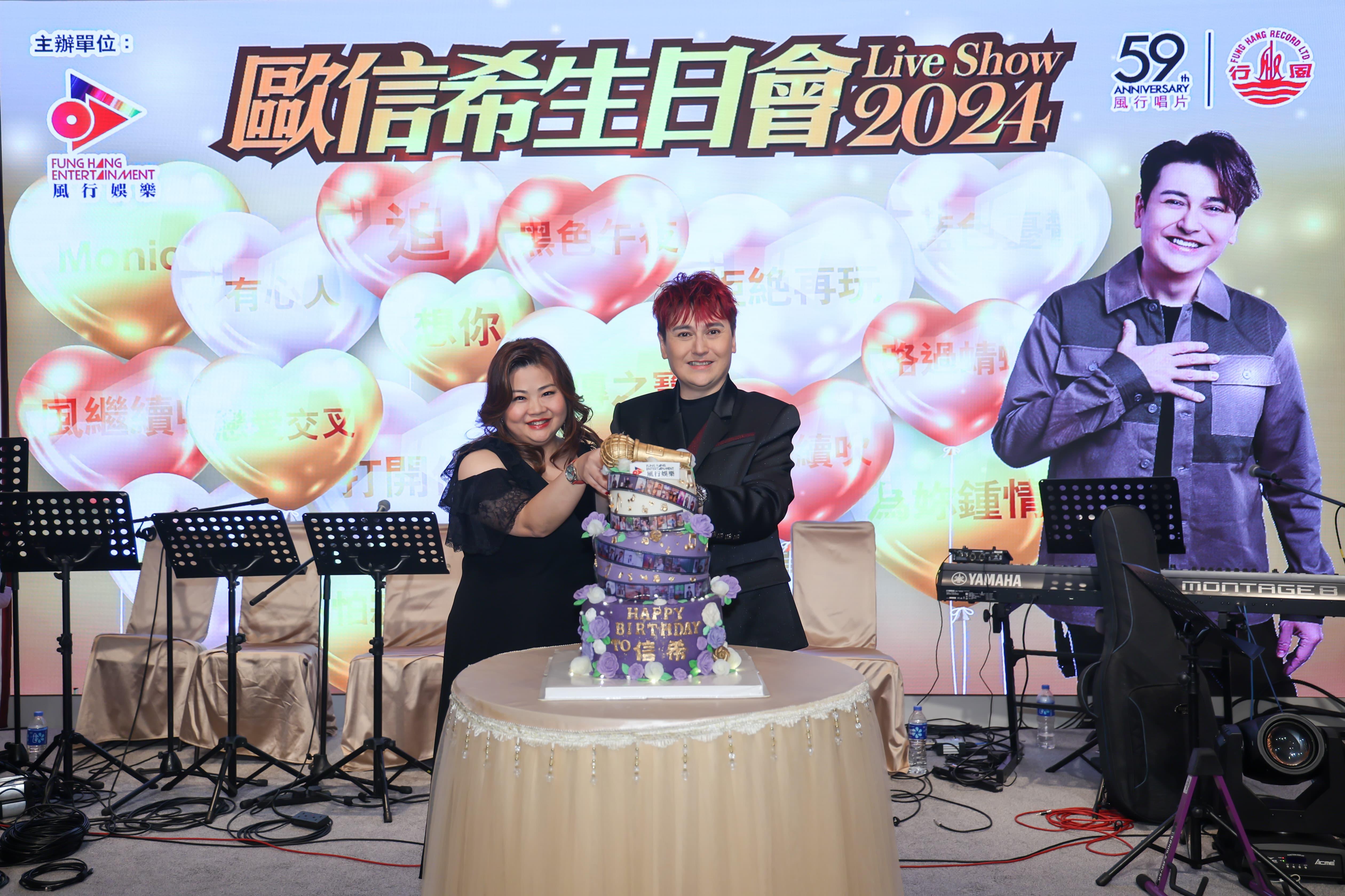 歌手歐信希,日前與歌迷及好友慶祝56歲生日,舉行《歐信希生日會暨向張國榮金曲致敬Live Show》,生日派對筵開16席,他全晚獻唱了逾10首張國榮的經典金曲,有如迷你演唱會,更首度獻唱新歌《家傳之寶》,一班忠心fans更悉心為其安排生日蛋糕,令他感動落淚。