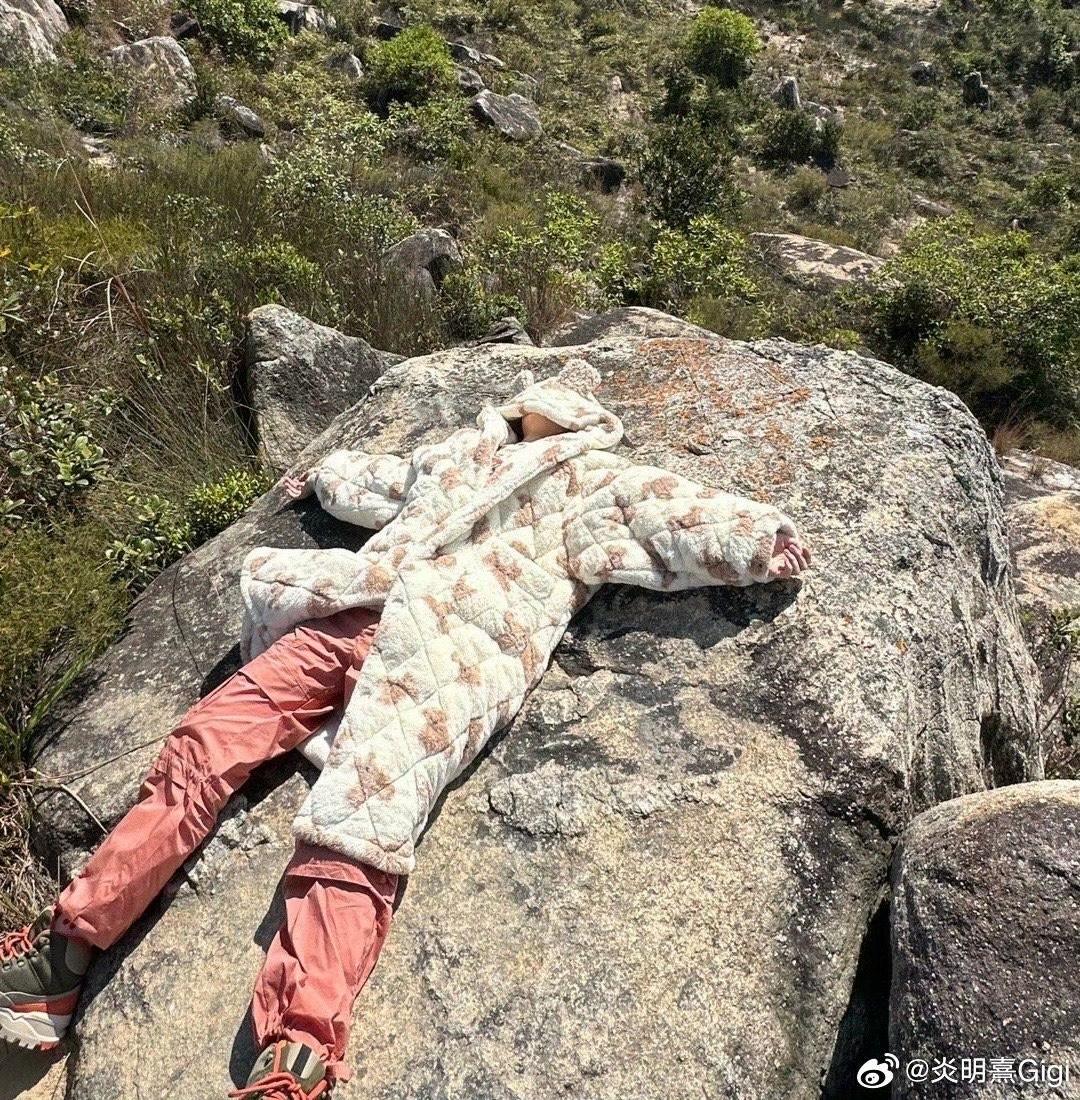 Gigi 日前在社交網分享多張行山照,相中見她穿上厚厚的毛衣躺在山頂上的大石,她寫道:「今天天氣真好,與我的趕急成為鮮明對比。如果大家要影咁嘅相,請小心安全 # #ddl #躺平 #逐一擊破」她更於微博表示:「好想躺平,我哭死,救救我救救我救救我救救我」網民都認為她的「躺平」留言意有所指,未幾Gigi更刪文即惹起揣測。