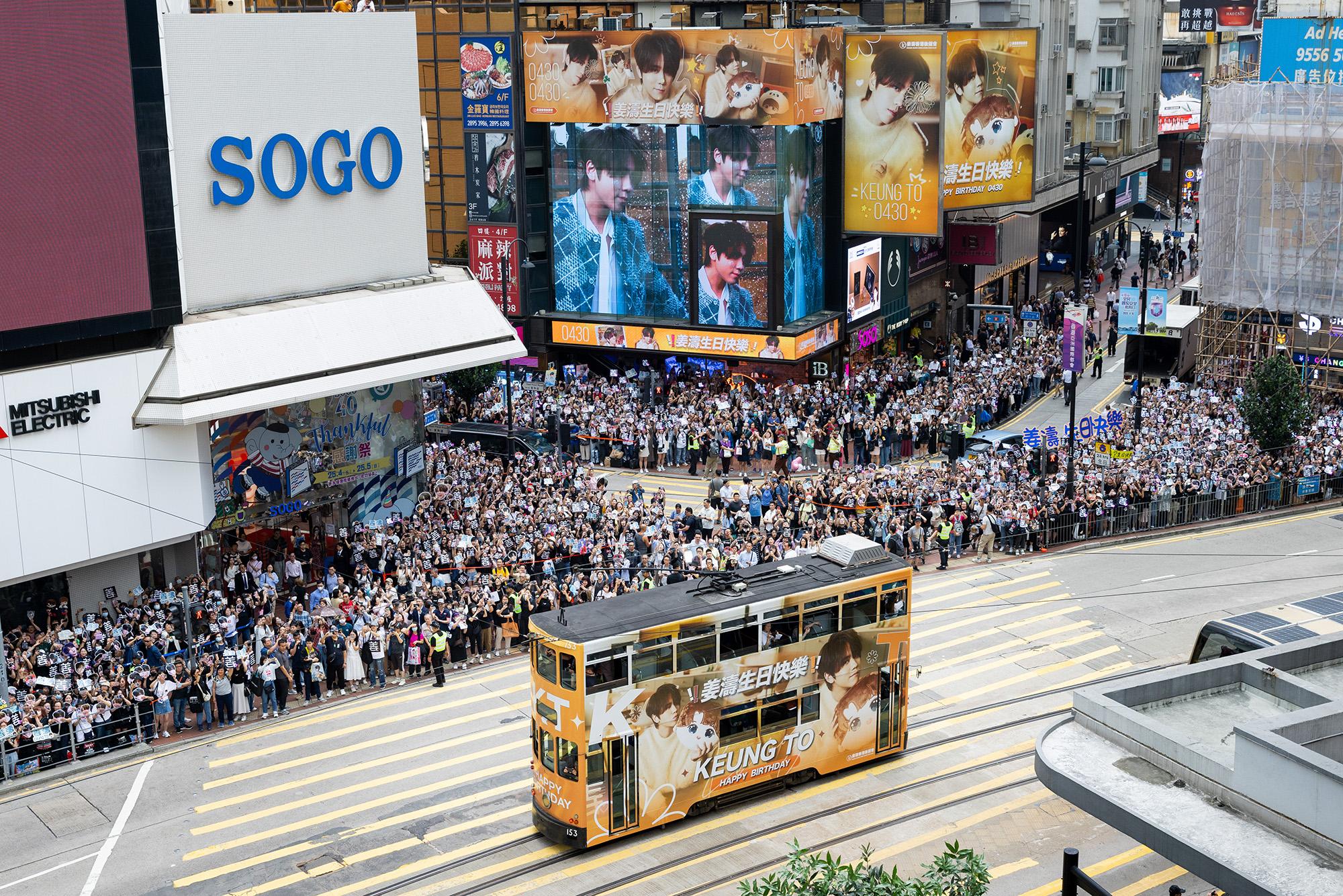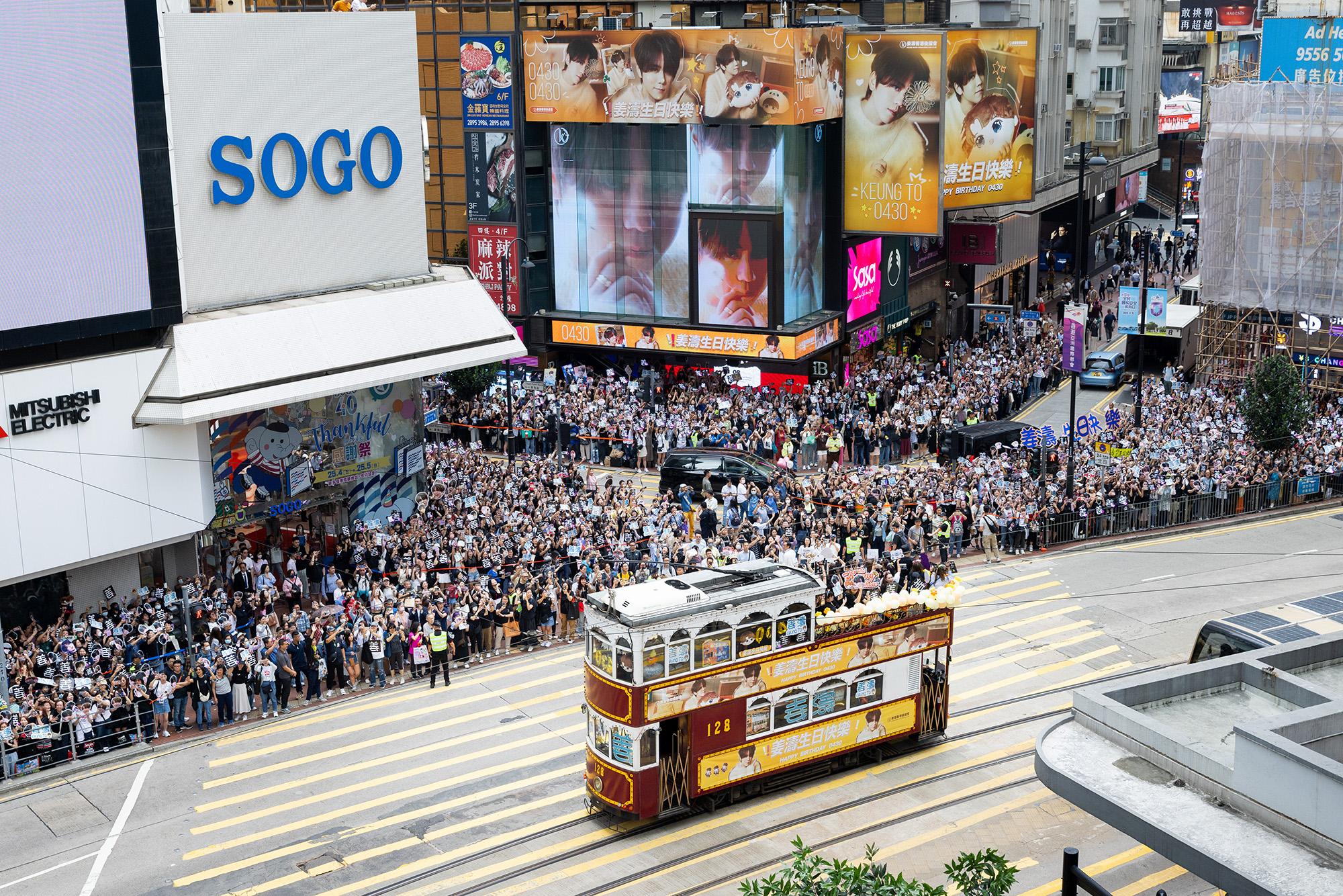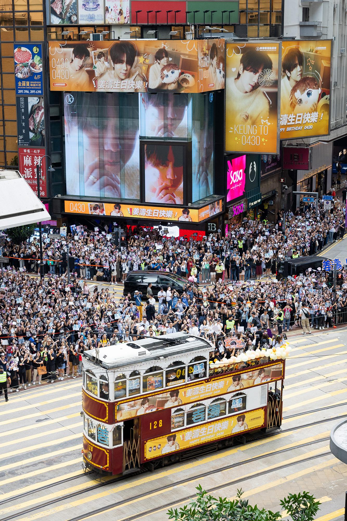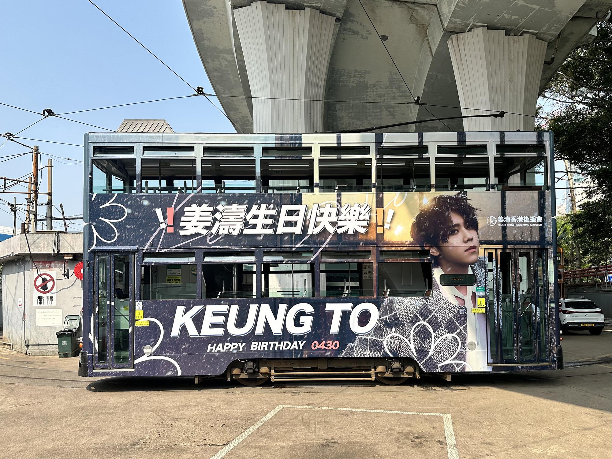 今年亦再度升級,4款不同造型的廣告電車已率先面世,當中姜濤更榮登巨型廣告電車(300號)的「第一人」,後援會成為首個動用巨型廣告電車 (300號)的團體,向偶像送上生日祝福,而4輛「姜濤號」自四月初起穿梭港島鬧市。