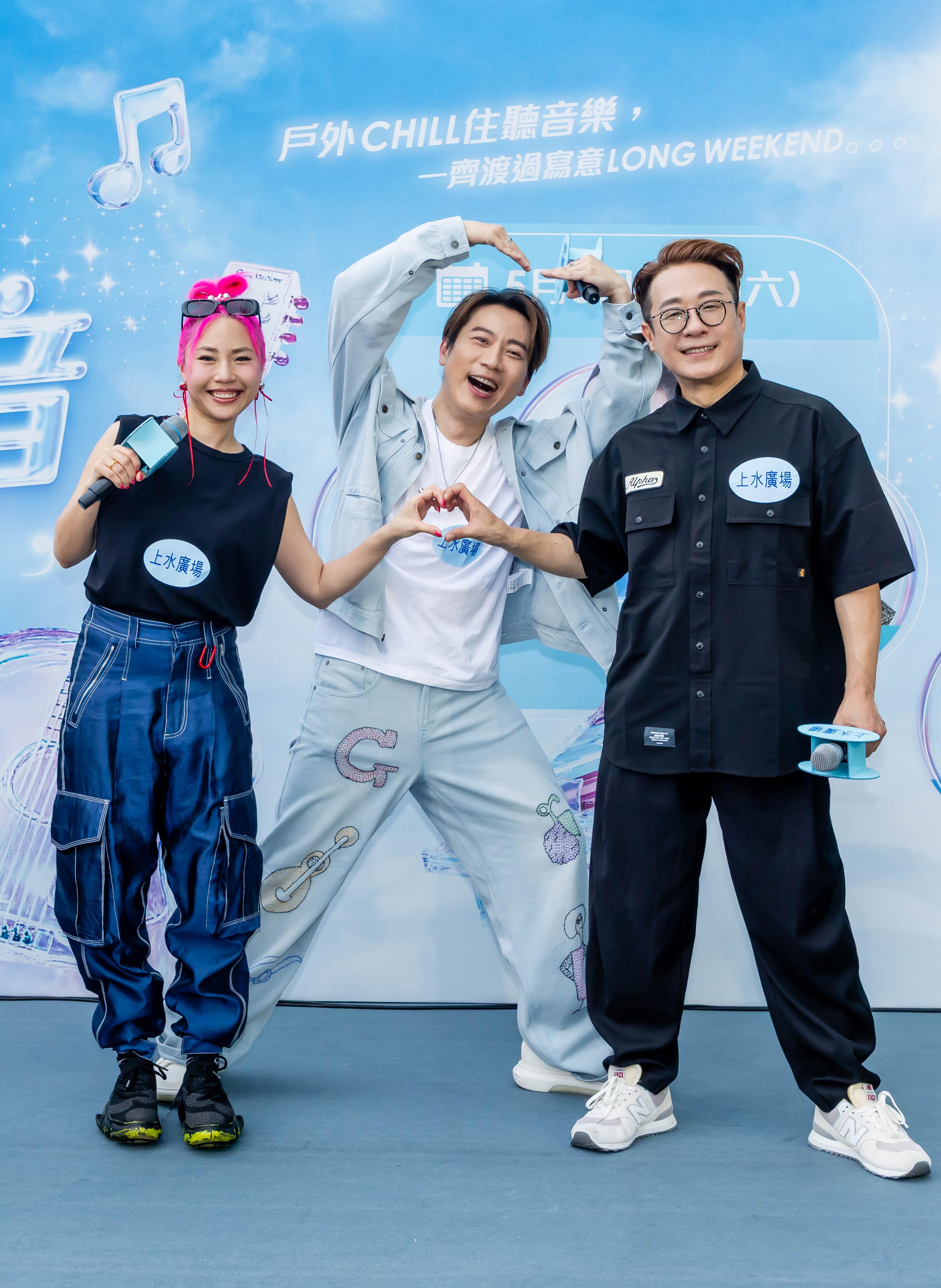顏米羔、陳俞霏、丁文俊出上水廣場活動。