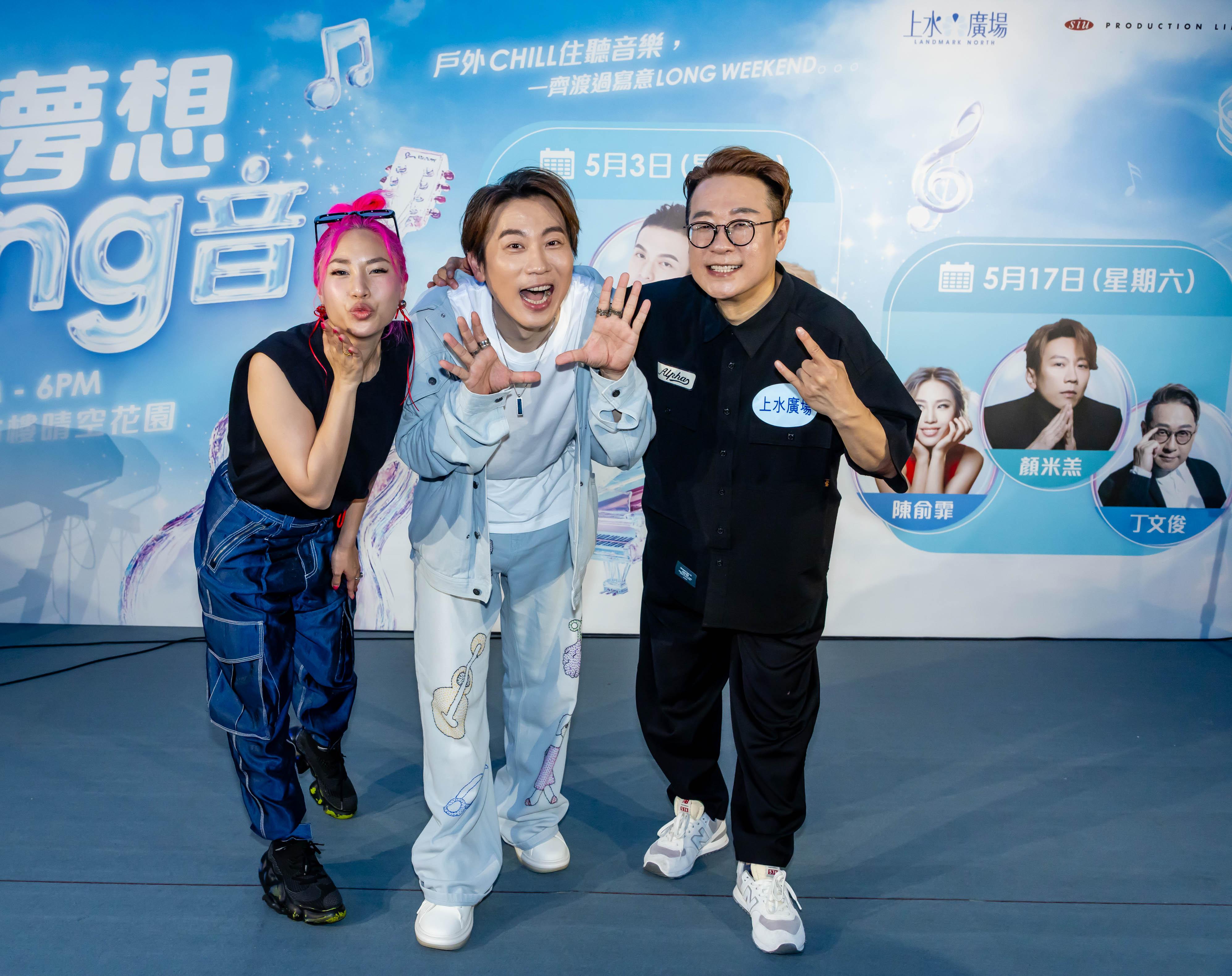 《中年好聲音1 & 2》的顏米羔、陳俞霏、丁文俊昨日(17日)現身上水廣場的「夢想好Sing音」,獻唱張國榮、郭富城、陳慧琳等多首金曲,丁文俊又演繹個人單曲《人有無數可能》,3人狂派心心獻飛吻,又與粉絲大玩互動遊戲,落力冧爆粉絲。 最後引領全場大合唱,在熱鬧氣氛中結束活動。