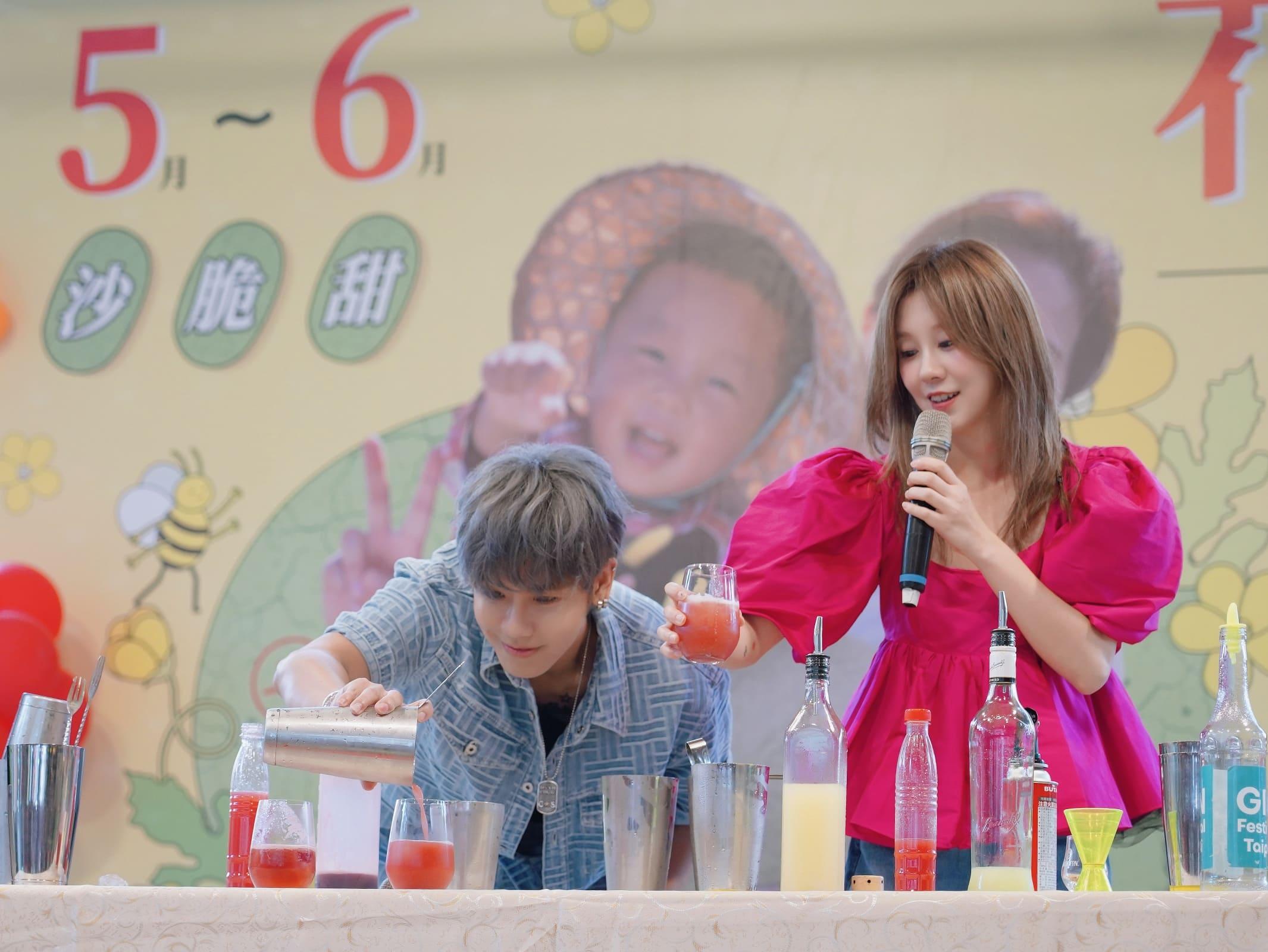 鼓鼓、白安為花連西瓜製作西瓜特調飲品 邀請粉絲上台品嚐