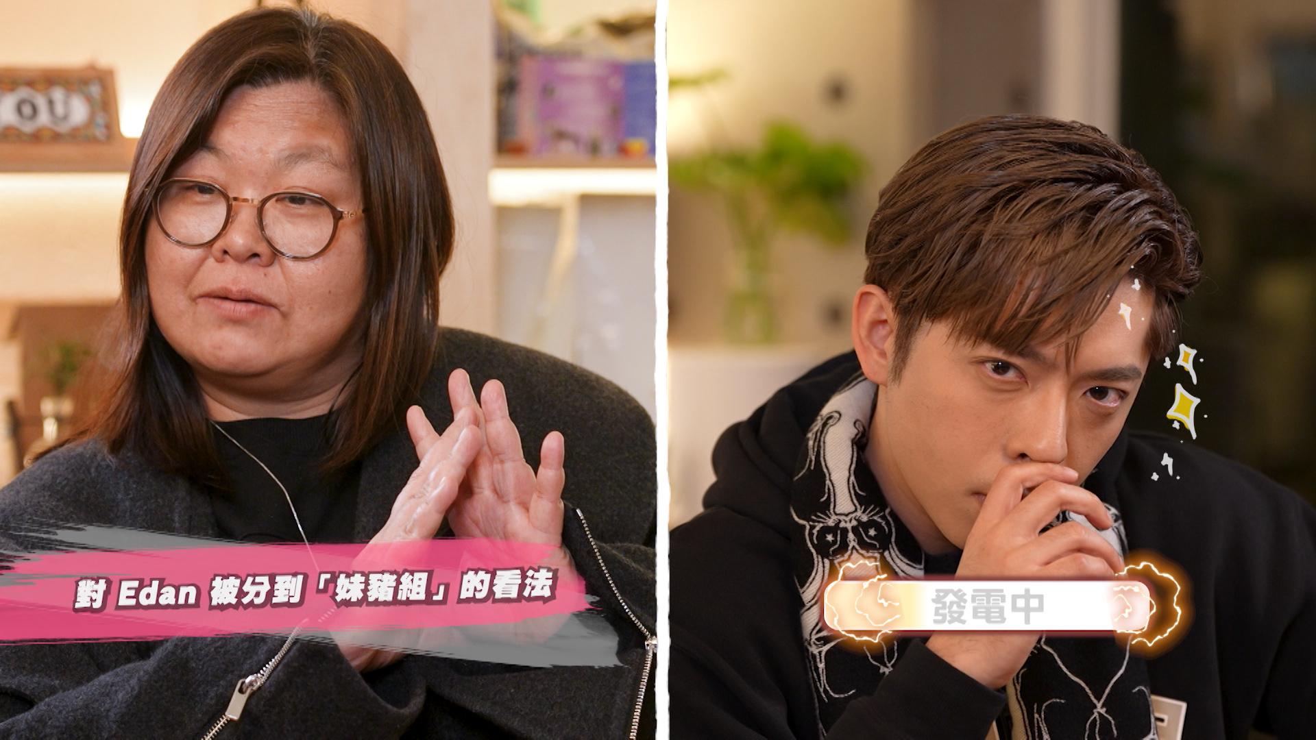 談到如何疏導情緒,Edan直認以前較封閉和保護自己,但現在也會主動跟花姐或Anson Lo等分享,「以前好少講自己嘅嘢或諗法,唔舒服都唔會講,永遠都自己消化;另外,可能我想自己係一個好開心好理性和正面嘅人,所以有唔開心都唔會表現出來,大家都需要好開心好有energy嘅Edan。」不過他亦表示近年心態有轉變,逐漸願意打開心扉。接著,氣氛一轉,兩人談到彼此缺點時,Edan貫徹率直抵死的作風,「佢好睇心情,心情好同唔好,處理同一件事或問題,可能有好大落差,加上佢硬項頸,如果遇著心情唔好,你就要收聲。同埋佢有種欺善怕惡。」