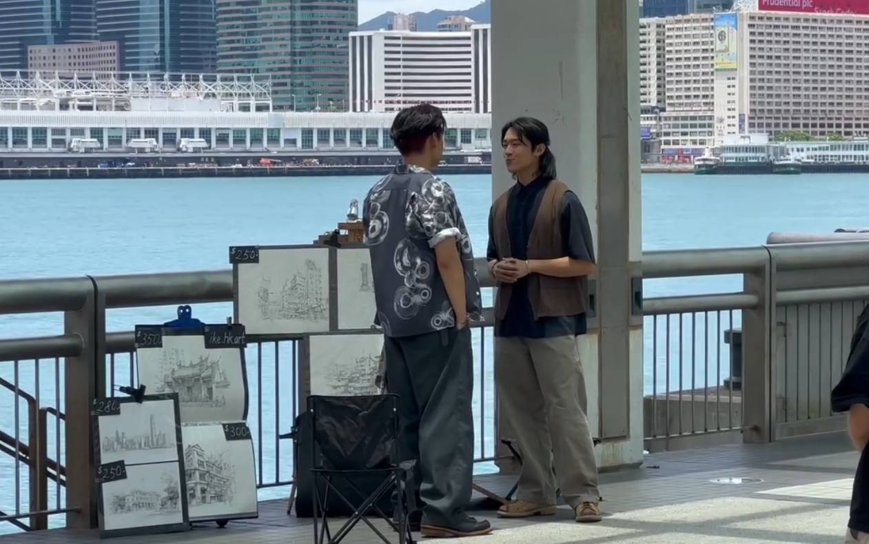 陳毅燊(ANSONBEAN)最近忙於拍攝禮濤執導電影《我們不是什麼》,有網民在社交平台上載多段影片及照片,見到長頭髮的ANSONBEAN身穿啡色背心配上深色短袖衫,紮起頭髮在中環碼頭向外籍人士兜售掃瞄畫作,之後駱振偉(Thor)跑過去跟他閒聊。
