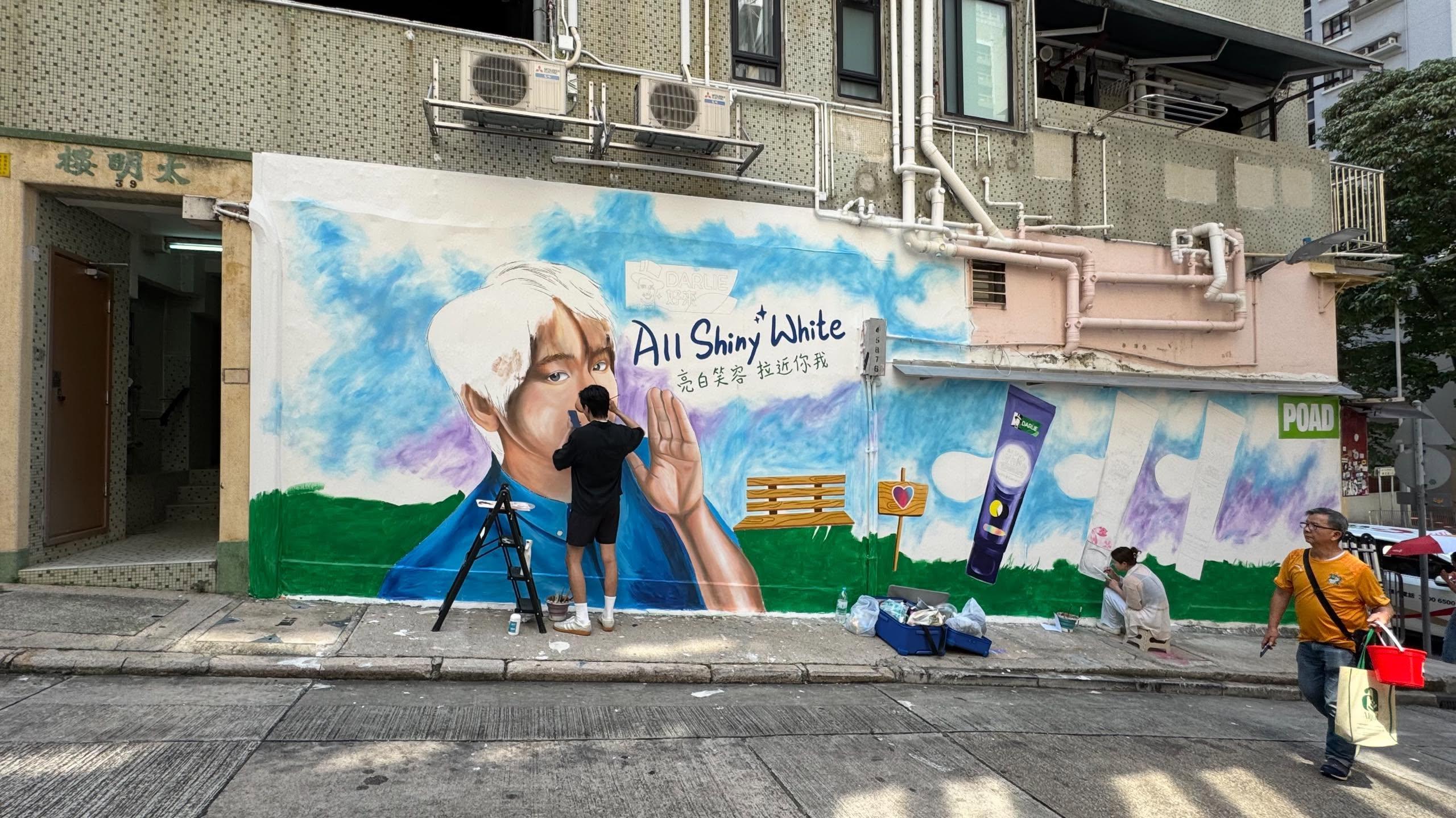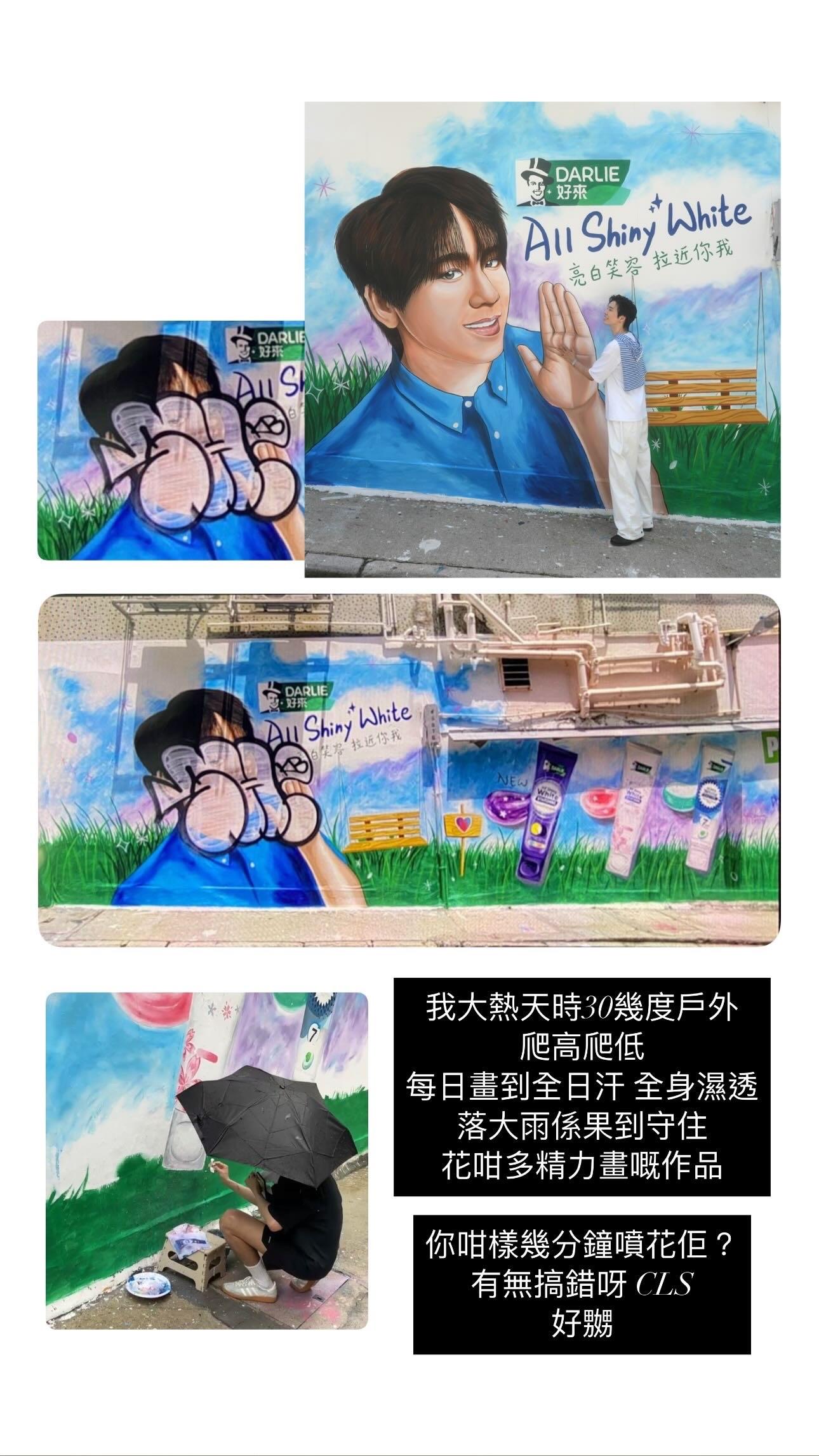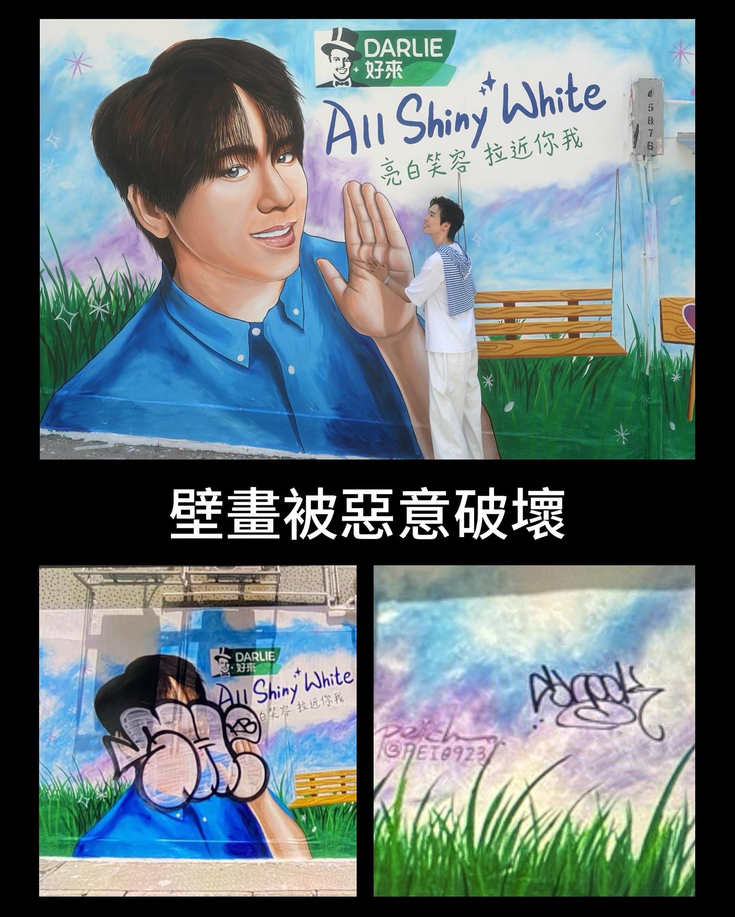 「姜濤X Darlie All Shiny White 亮白笑容藝術牆」原定今日才結束,但下午時份已經被毀。