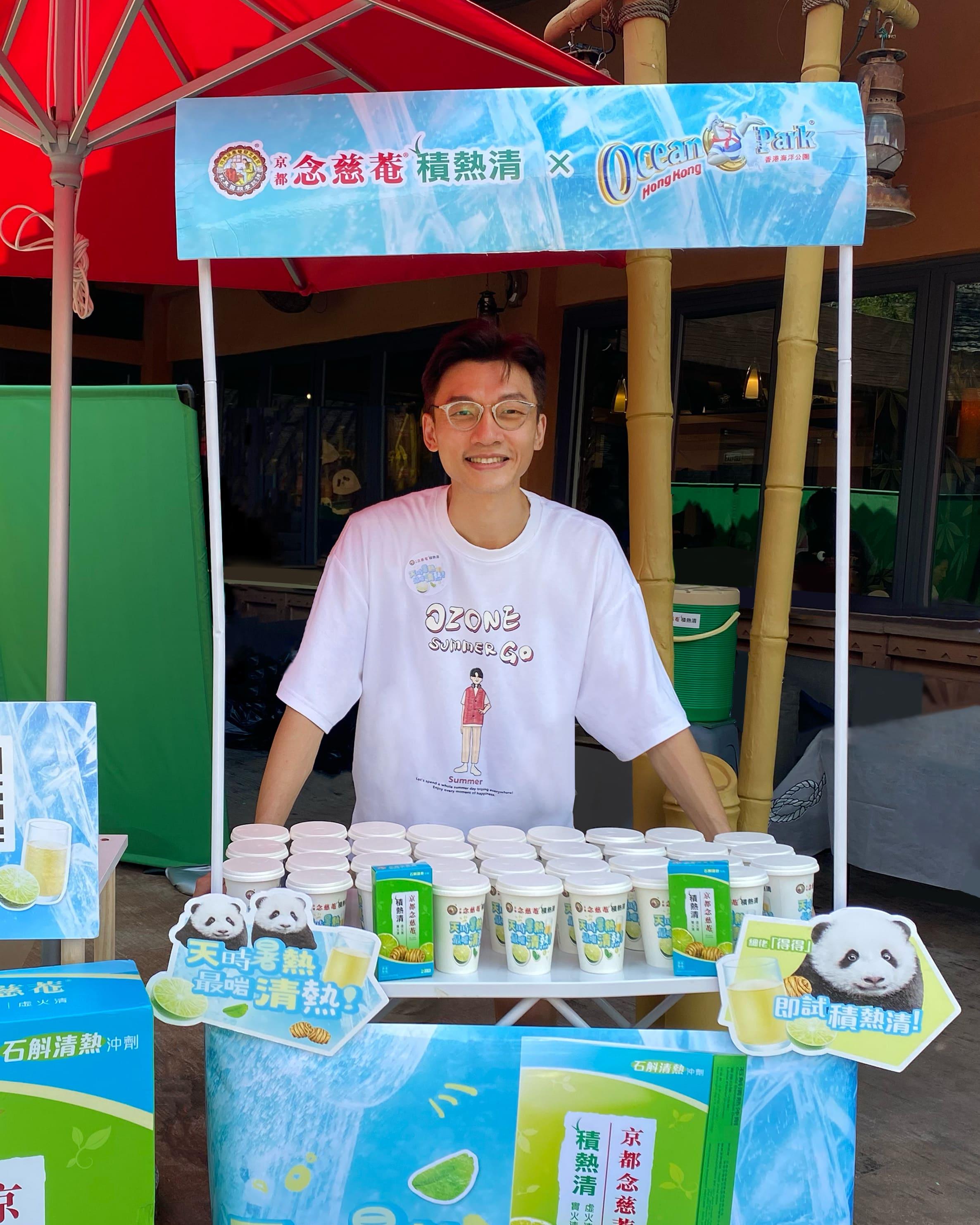 Peter表示每隻小動物包括大熊貓的成長過程絕不容易,自己平時都要幫忙照顧小朋友所以絕對明白當中困難,幸好海洋公園安排了一班專業的大熊貓護理員照料加加和得得。Peter說:「都市人經常瞓得唔夠,火氣攻心,我自己因工作關係更加試過夏天要着冬天衫拍攝,就算我點樣professional,但身體就最誠實,有時真係覺得熱到不得了,好似有個小火爐慶住成個人,就算點涼冷氣都冇用。於是我就四圍問人揾方法清熱,終於有機會俾我親身試飲咗《京都念慈菴積熱清》,發覺清熱效果非常好,所以我先應承參與廣告拍攝同今次活動。」