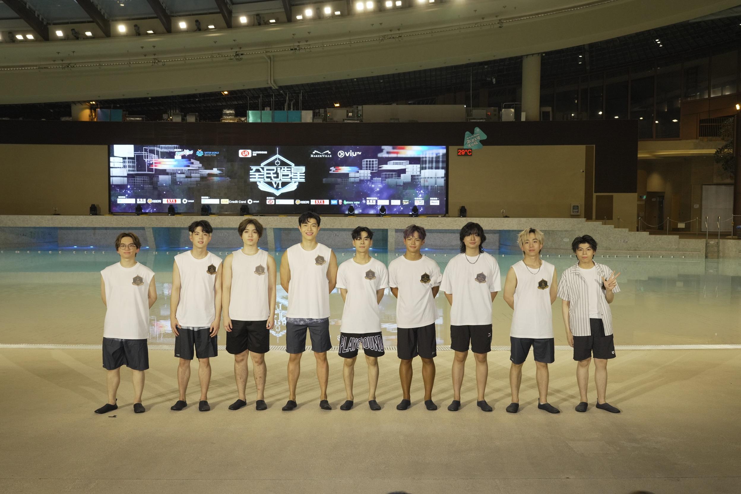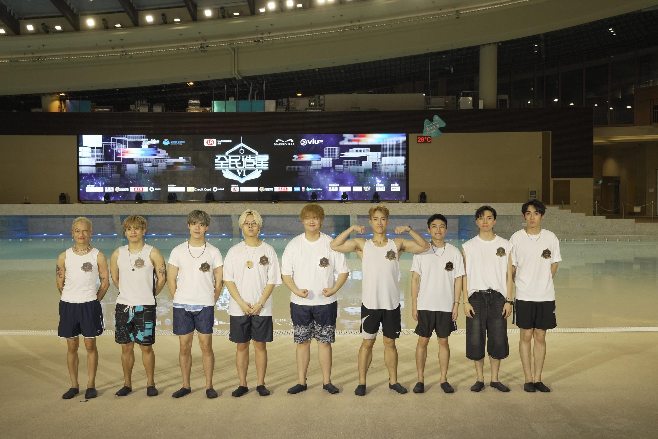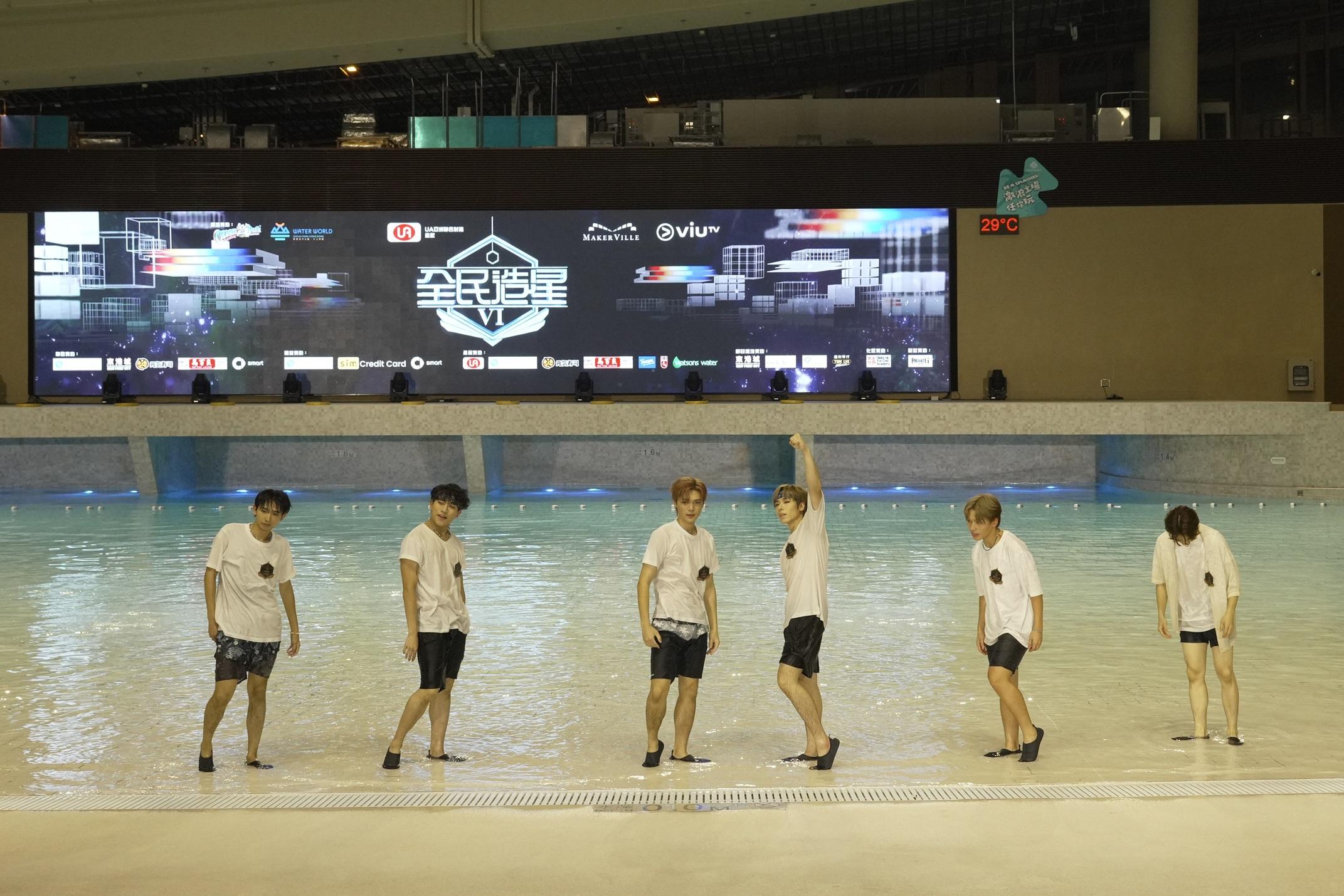 《全民造星VI》76位參賽者昨晚(19日)以夏日look現身海洋公園,雖然有21人因事缺席,但首次在水中大跳《前傳》,一眾參賽者們以清爽的夏日造型登場,濕身熱舞氣氛high爆。其中6號Gordon、11號Louis、18號Kai Cheung在《造星VI》專頁瀏覽率帶頭,奪得網上人氣三甲。由於今年因調低參賽者年齡,出現「未成年」成員,身為「六朝元老」的花姐與KK謝家驥坦言,猶如湊仔要格外小心照顧,KK指花姐鬧爆大家,但即時遭否認,花姐表示:「我係提醒大家要重視呢個表演,大聲唔代表鬧,係愛與關懷。」
