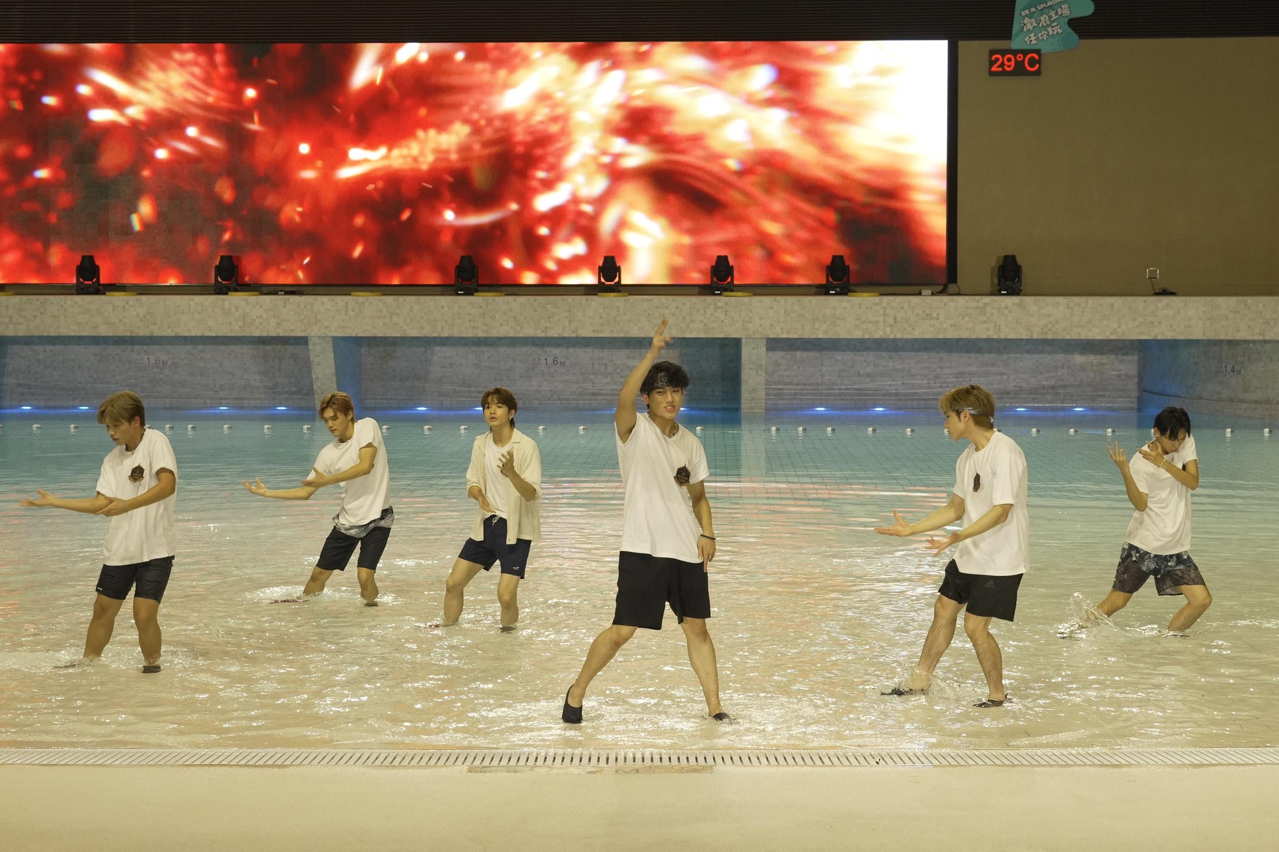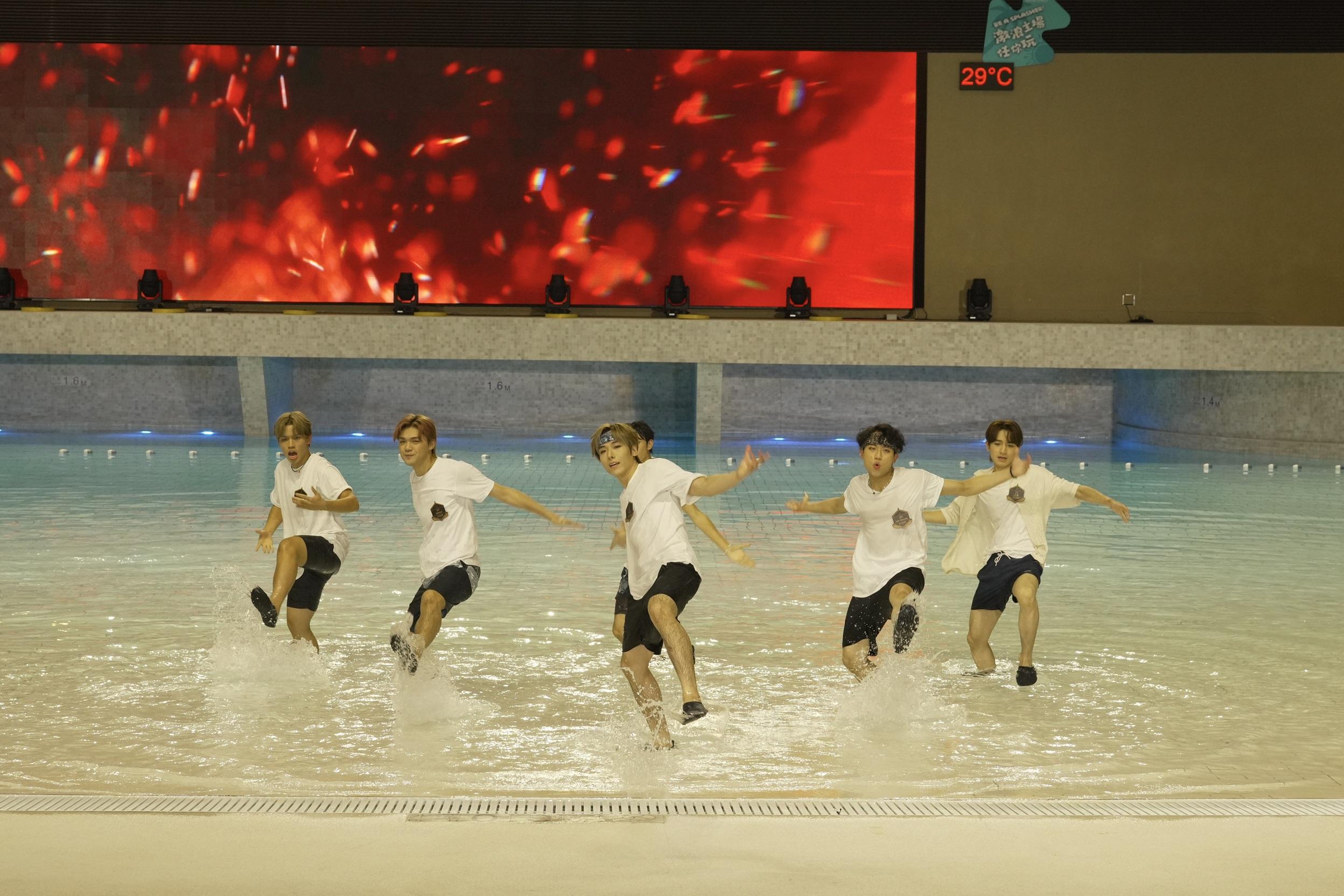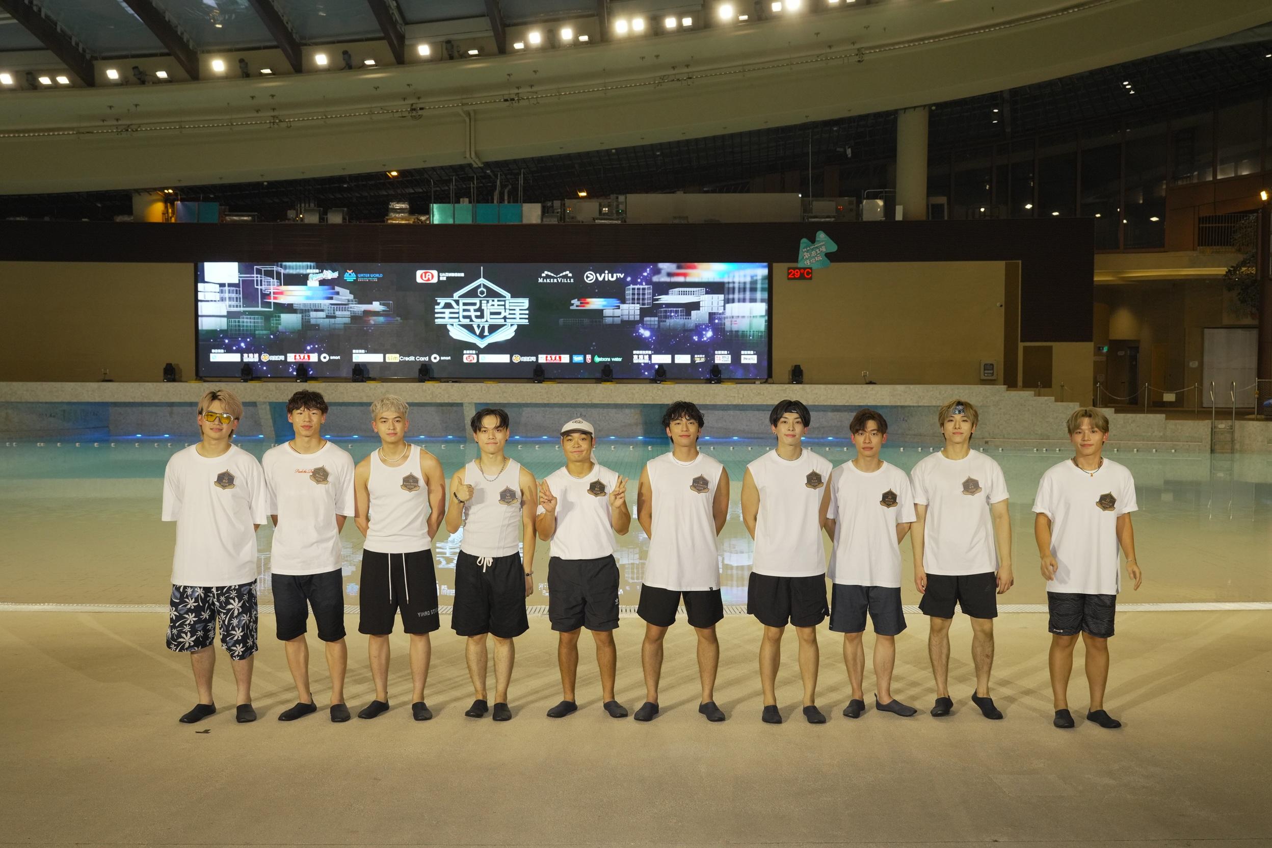 《全民造星VI》76位參賽者昨晚(19日)以夏日look現身海洋公園,雖然有21人因事缺席,但首次在水中大跳《前傳》,一眾參賽者們以清爽的夏日造型登場,濕身熱舞氣氛high爆。其中6號Gordon、11號Louis、18號Kai Cheung在《造星VI》專頁瀏覽率帶頭,奪得網上人氣三甲。由於今年因調低參賽者年齡,出現「未成年」成員,身為「六朝元老」的花姐與KK謝家驥坦言,猶如湊仔要格外小心照顧,KK指花姐鬧爆大家,但即時遭否認,花姐表示:「我係提醒大家要重視呢個表演,大聲唔代表鬧,係愛與關懷。」