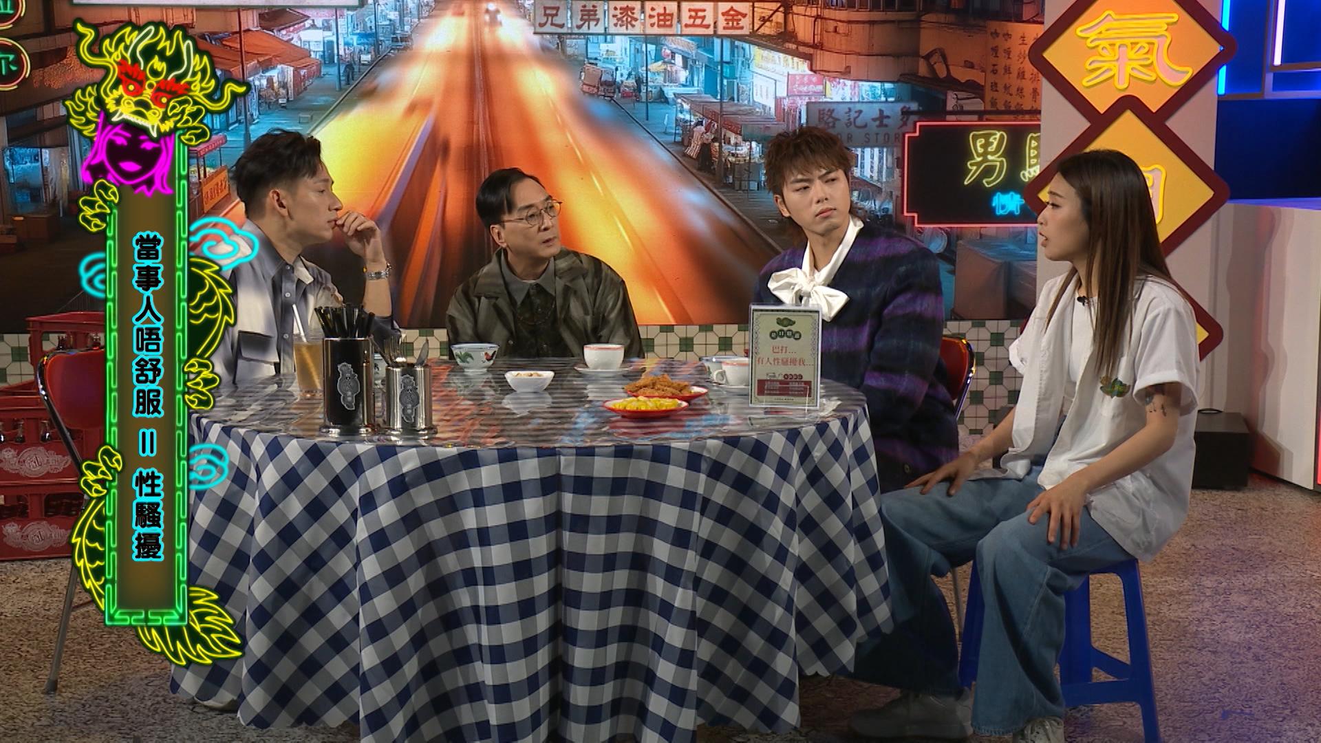193大爆曾經被同事撫摸胸部:「佢成日一見到我,就會行過嚟掂我個胸,又會形容我乳頭係咩形狀。」灘叔則直言有時候是反應不及:「好多時你係男仔,人哋係同你玩嘅態度,如果你發脾氣,就好似好小器咁。」但3位主持從相反角度思考,在同樣情境下,對象換作是女性,結果截然不同。