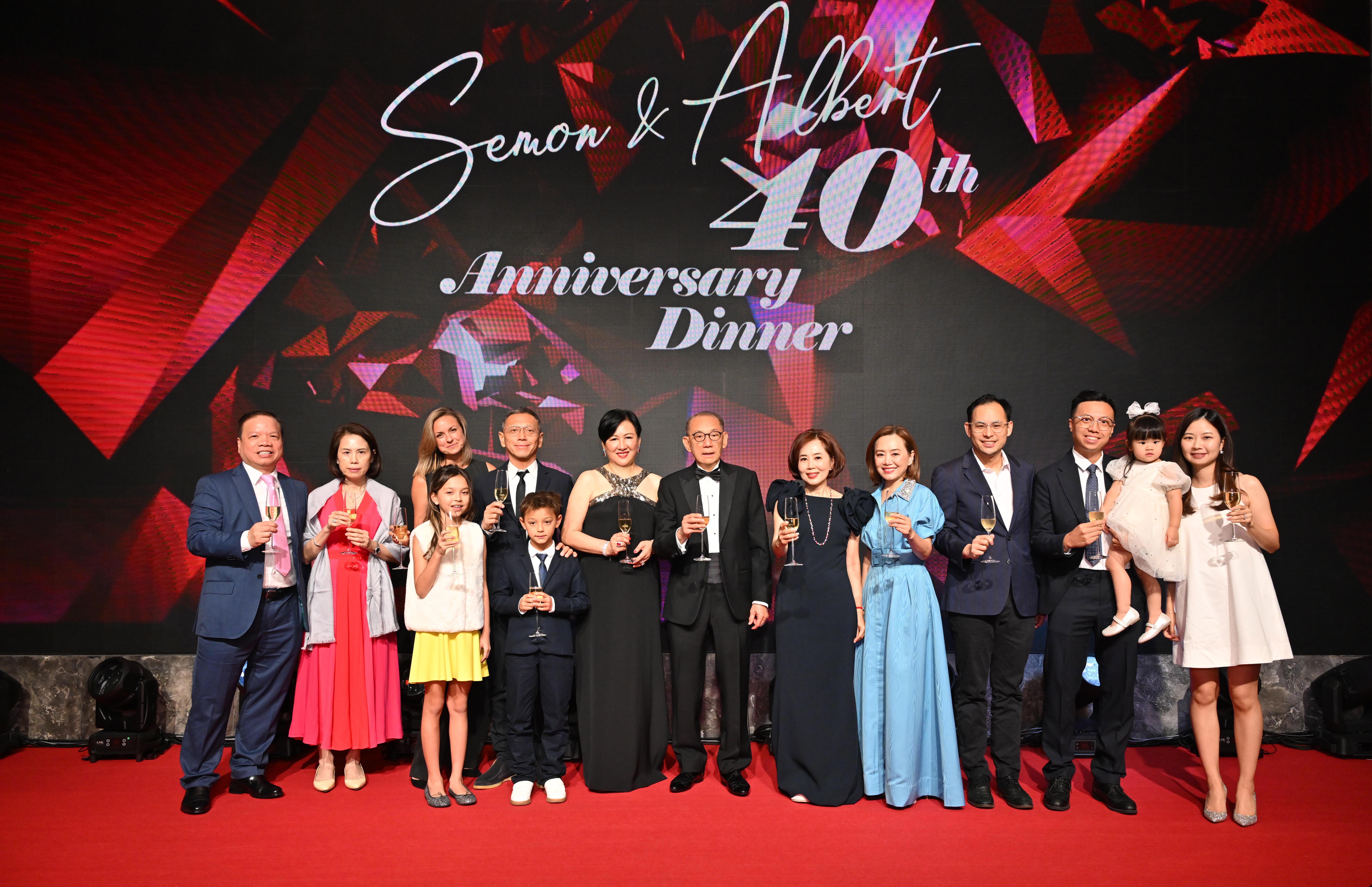 英皇集團主席楊受成與太太日前舉辦「40週年紅寶石婚晚宴」,筵開超過20席招待政商娛樂界名人好友以及英皇集團同事一起慶祝。