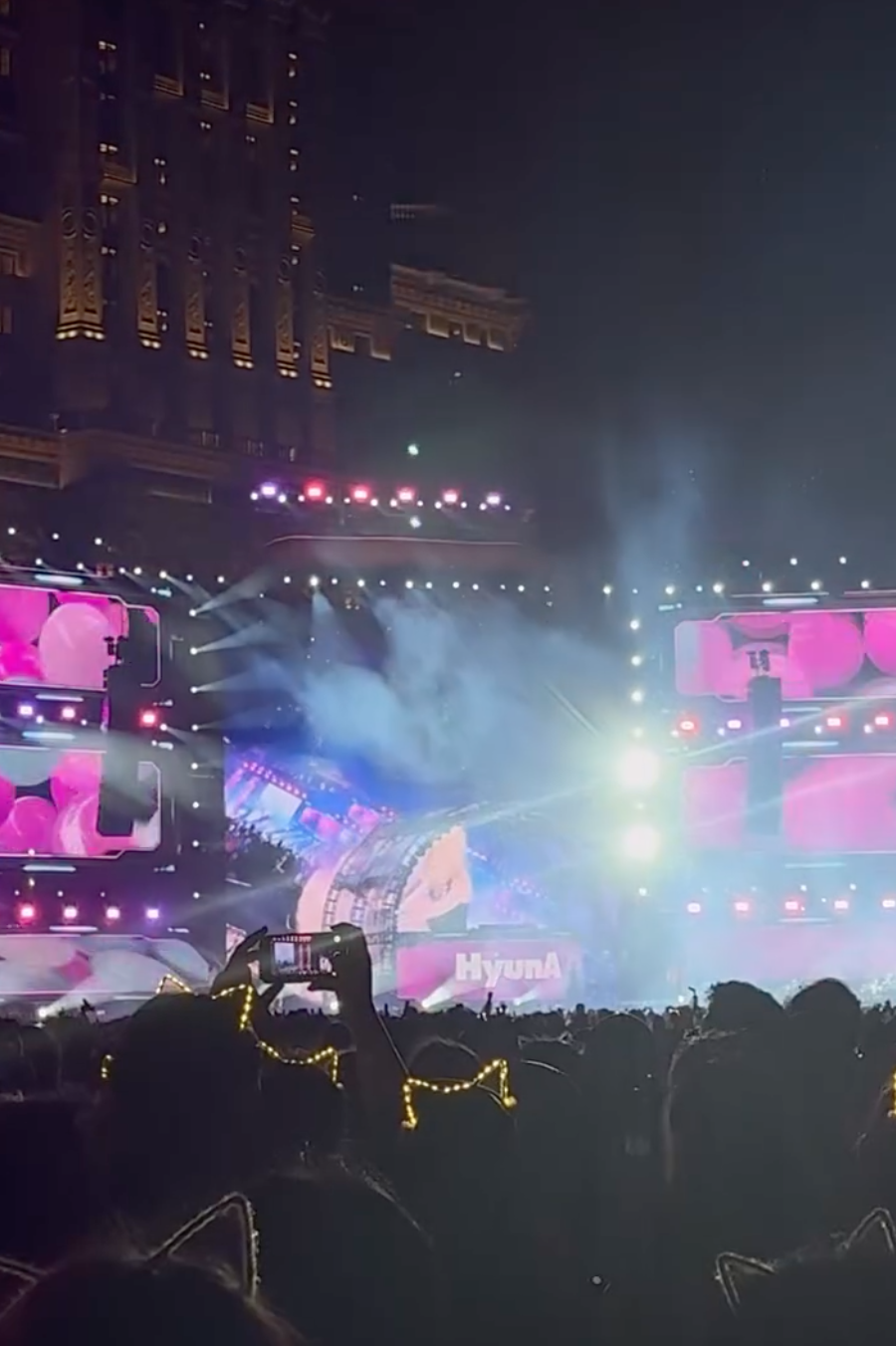 兩名舞蹈員隨即拍打她,保鑣亦衝上台將泫雅抱離現場,從網上流傳的影片所見,泫雅看似失去意識,保鑣要抱起她都一度有些吃力。