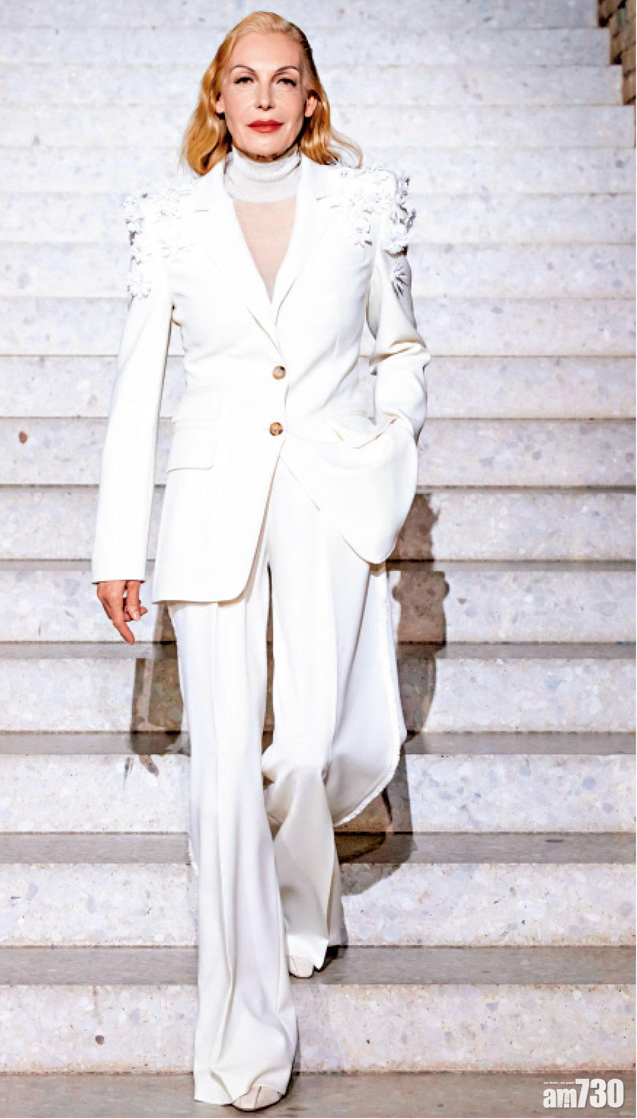 身著肩部點綴花朵刺繡的西裝的Ute Lemper,向柏林傳奇女神Marlene Dietrich致敬。