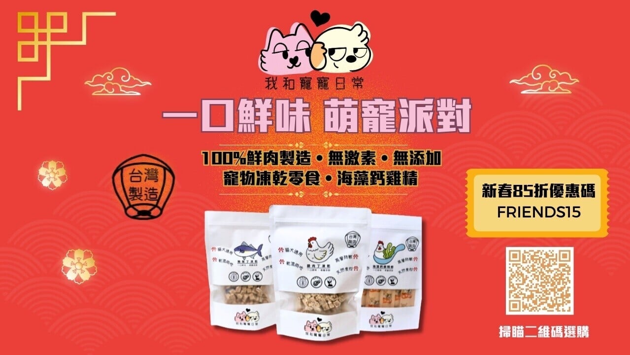 致力於為毛孩提供安心可靠的飲食選擇,嚴選台灣大廠生產的優質寵物食品,來源透明,品質有保障。產品堅持以新鮮食材製作,100%鮮肉入料,不含防腐劑與人工添加物,確保每一口都自然健康。特別選用無激素雞肉與鮮魚,為寵物提供多樣化的營養來源,滿足不同需求。品牌強調「優質、健康、可靠」三大理念,讓飼主能放心選購,讓毛孩享受美味同時維持健康。即日起推出新春優惠,輸入優惠碼 FRIENDS15 即可享全系列商品 85 折,人寵共渡佳節。