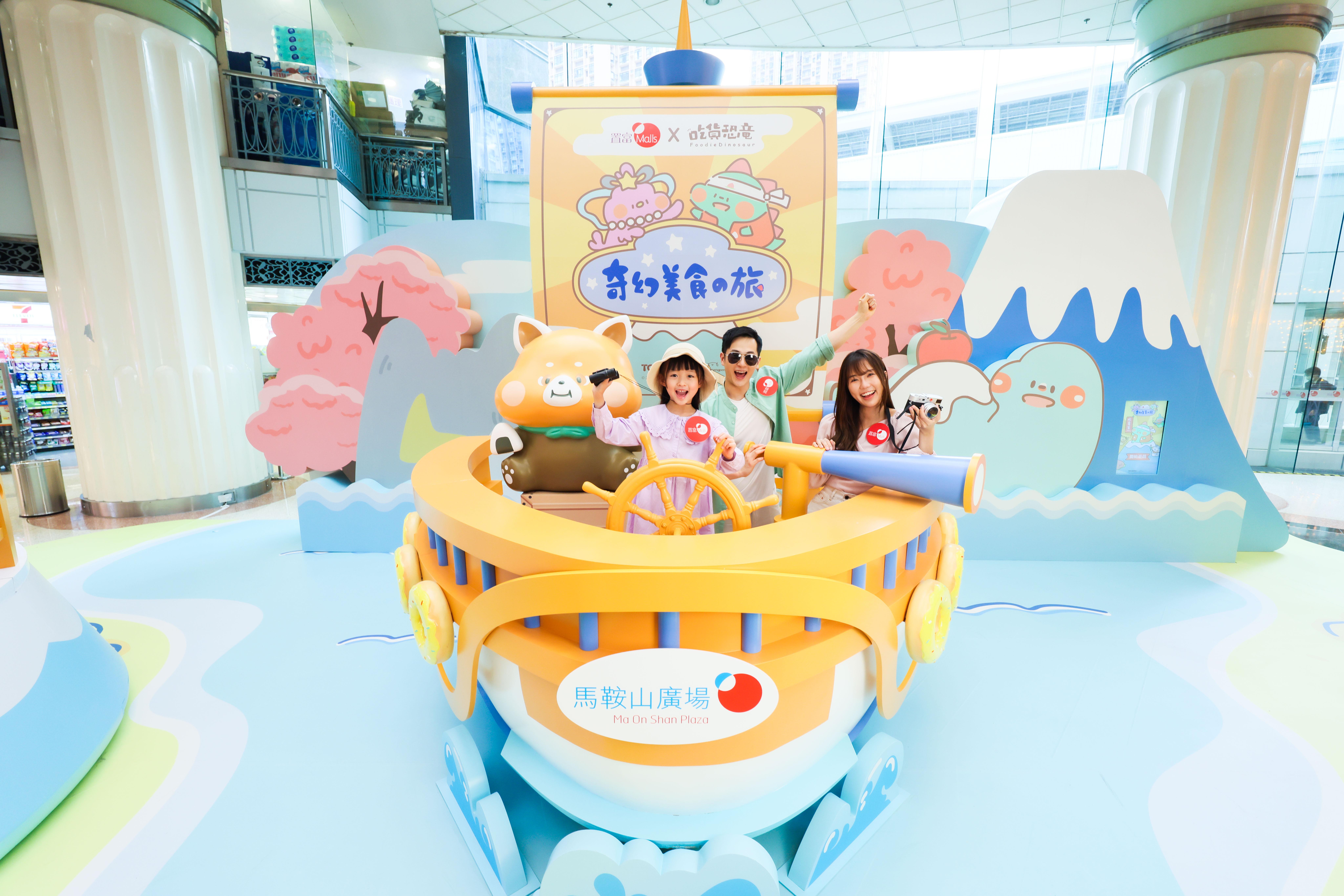 桃太郎 航海美食探險記的航道上,吃貨恐龍版的「桃太郎」來到馬鞍山廣場,今次不攻打鬼島轉換航道去美食島,近5米高的冒險船「吃貨第一號」,揚起印上吃貨「桃太郎」團隊的主帆,「小浣熊」船長遠目覓食,同時歡迎大家來體驗舵手滋味。