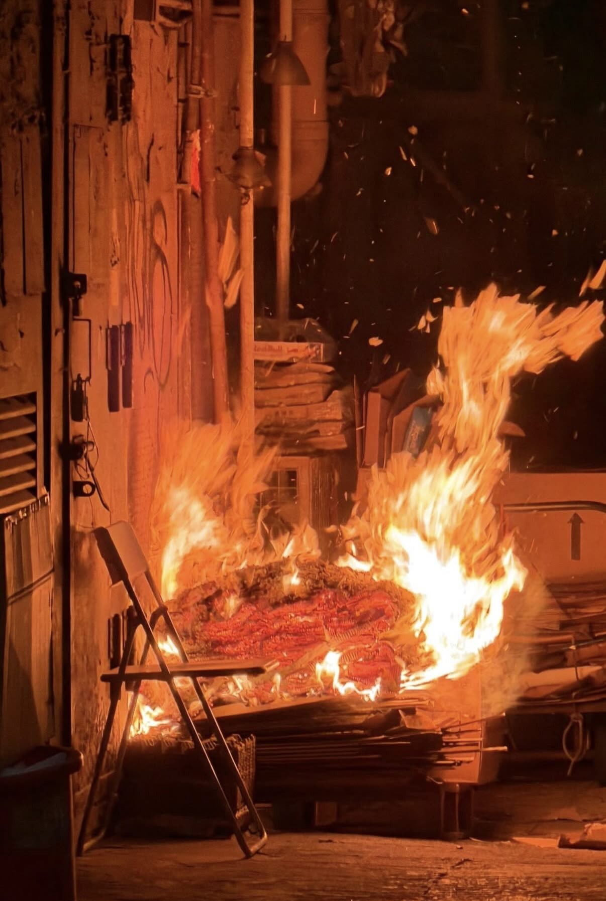 旺角彌敦道639號雅蘭中心對面後巷發生火警,消防到場將火救熄。(Threads@y_a_n928)