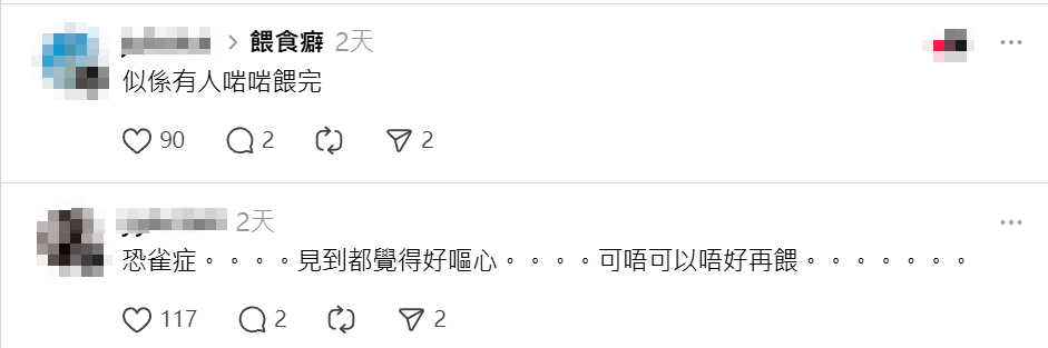 貼文引起熱議,有網民懷疑有人餵食,亦有人指該位置長期有大量白鴿,「係有人啱啱餵完」、「恐雀症,見到都覺得好嘔心,可唔可以唔好再餵」、「成班雀特登企喺個橫額前面開餐」、「隔離張嘢幾諷刺」、「建議唔好行呢條樓梯,過去中環街市落去算」、「上次路過中環街市見到啲雀仔肥到成粒波咁即刻影低咗,估唔到咁多人餵,好誇張」、「中環街市一帶由以前到依家都係咁多白鴿」、「有次做完野經過,見到成群開餐,唔知點解有種恐懼感,唔敢行」、「見到頭皮發麻」、「呢個位係超恐怖,我係唔敢行呢條樓梯,仲有呢雀會飛落馬路,果日先見到有架的士撞死左隻白鴿」。