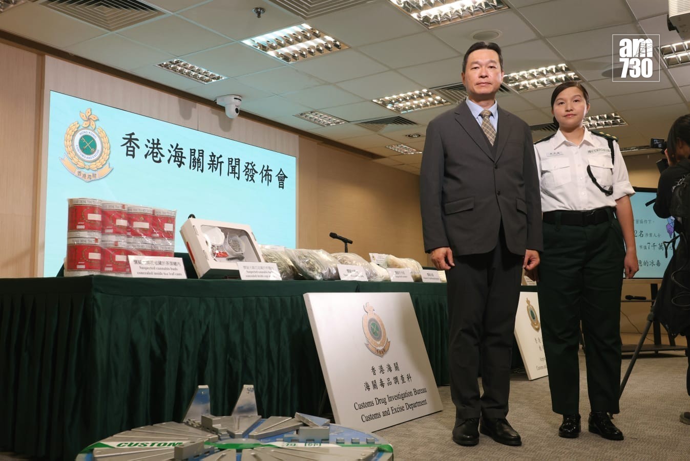至於空運貨物案件,海關上月3日在墨西哥運抵香港的木箱中發現可疑,貨物報稱載有車床夾板,但在檢查時呈現出密度不一,陰影不勻的情況,與車床構造並非一致,考慮到貨主以高額運費進口的做法不尋常,於是在消防處協助下,利用大型鑽破工具在夾板鑽孔檢查,最後檢獲34.7公斤冰毒,市值1,180萬元。