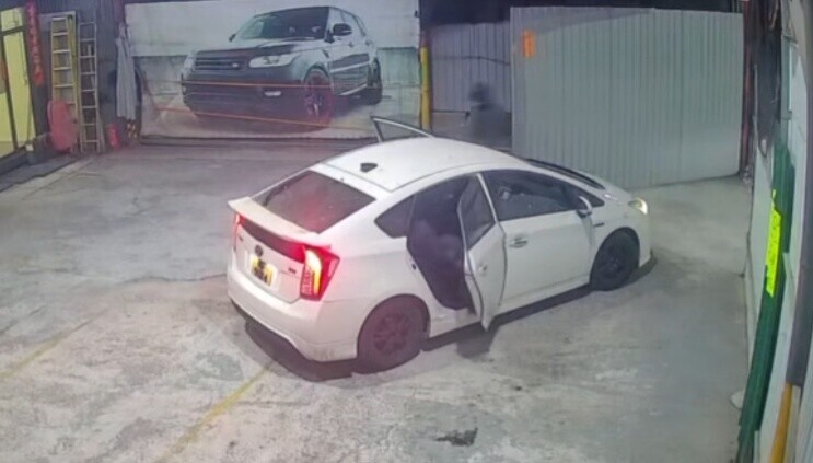 兩名戴著頭套、手持利刀的男子分別從私家車前後乘客位衝出,並衝向職員。(FB/香港交通及突發事故報料區) 職員為保命顧不上便奪門逃去,兩刀煞追出。(FB/香港交通及突發事故報料區) 職員見勢色不對立即輚身逃走,一名男子把職員的斜孭袋搶去。(FB/香港交通及突發事故報料區) 職員為保命顧不上便奪門逃去,兩刀煞追出。(FB/香港交通及突發事故報料區) 司機亦隨即把車駛前數米接應兩同黨後駛離車行。(FB/香港交通及突發事故報料區)
