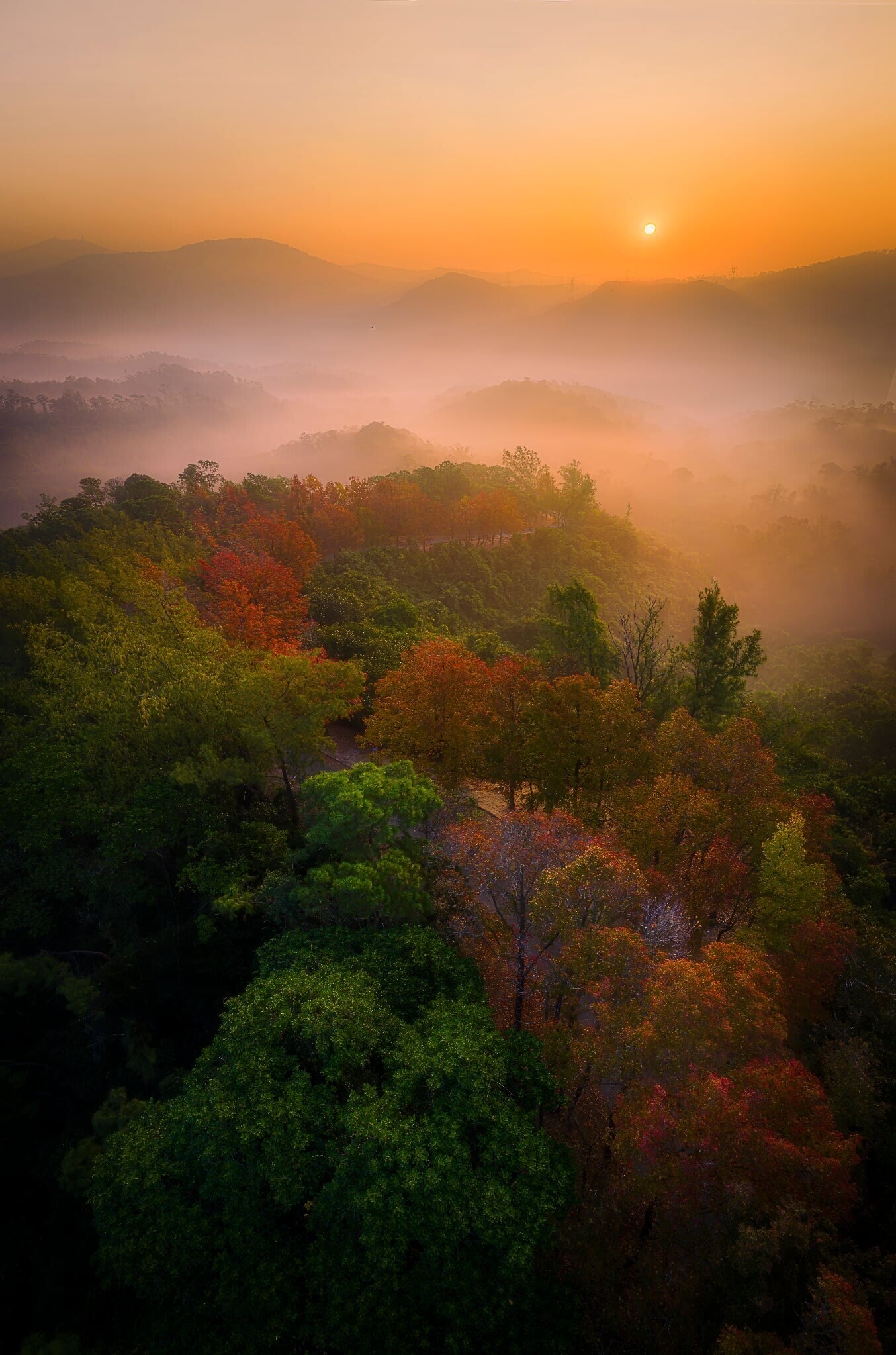 大棠美景「霧鎖楓香」,天文台指關鍵在於輻射冷卻。(香港天文台 HKO)