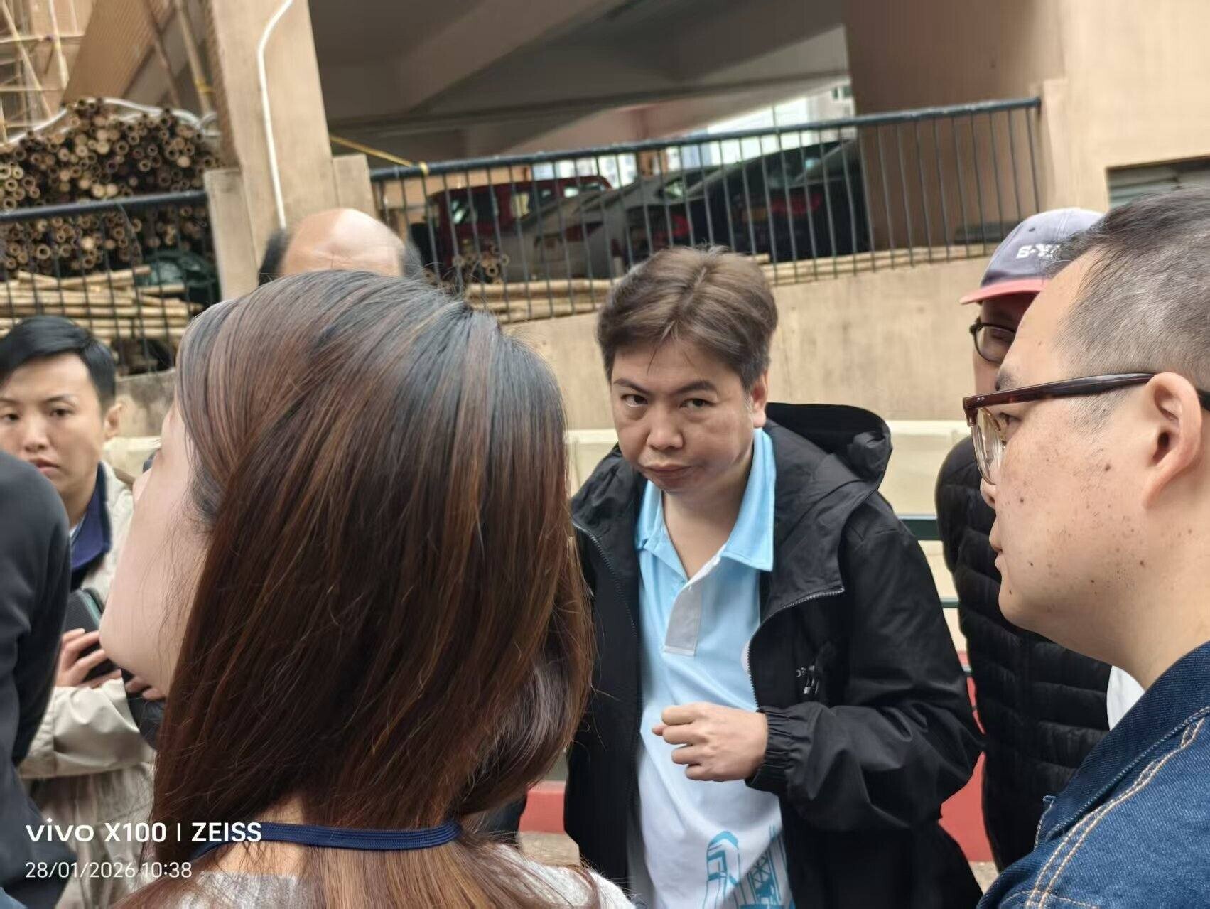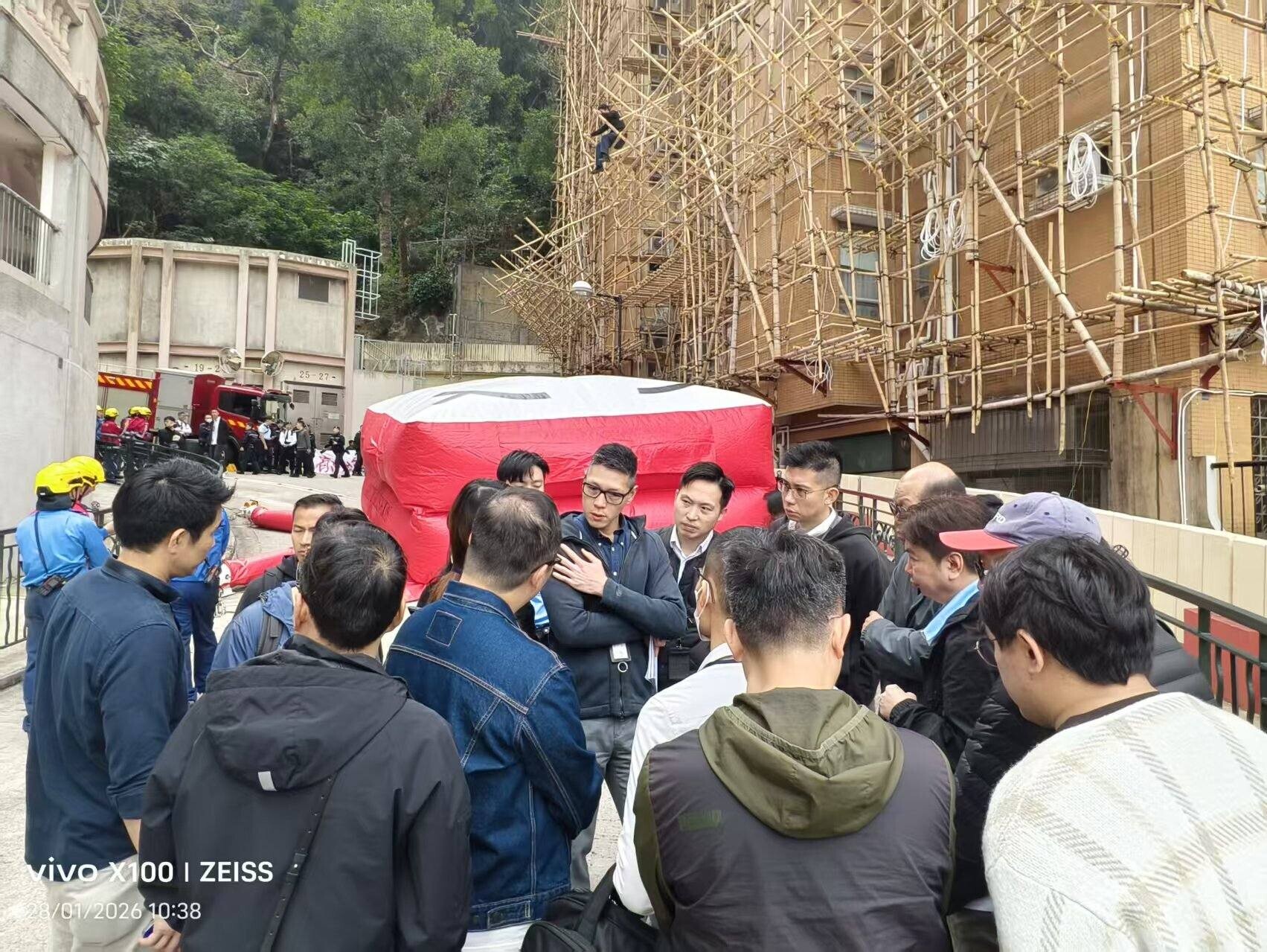 薄扶林有工人爬棚架追薪。