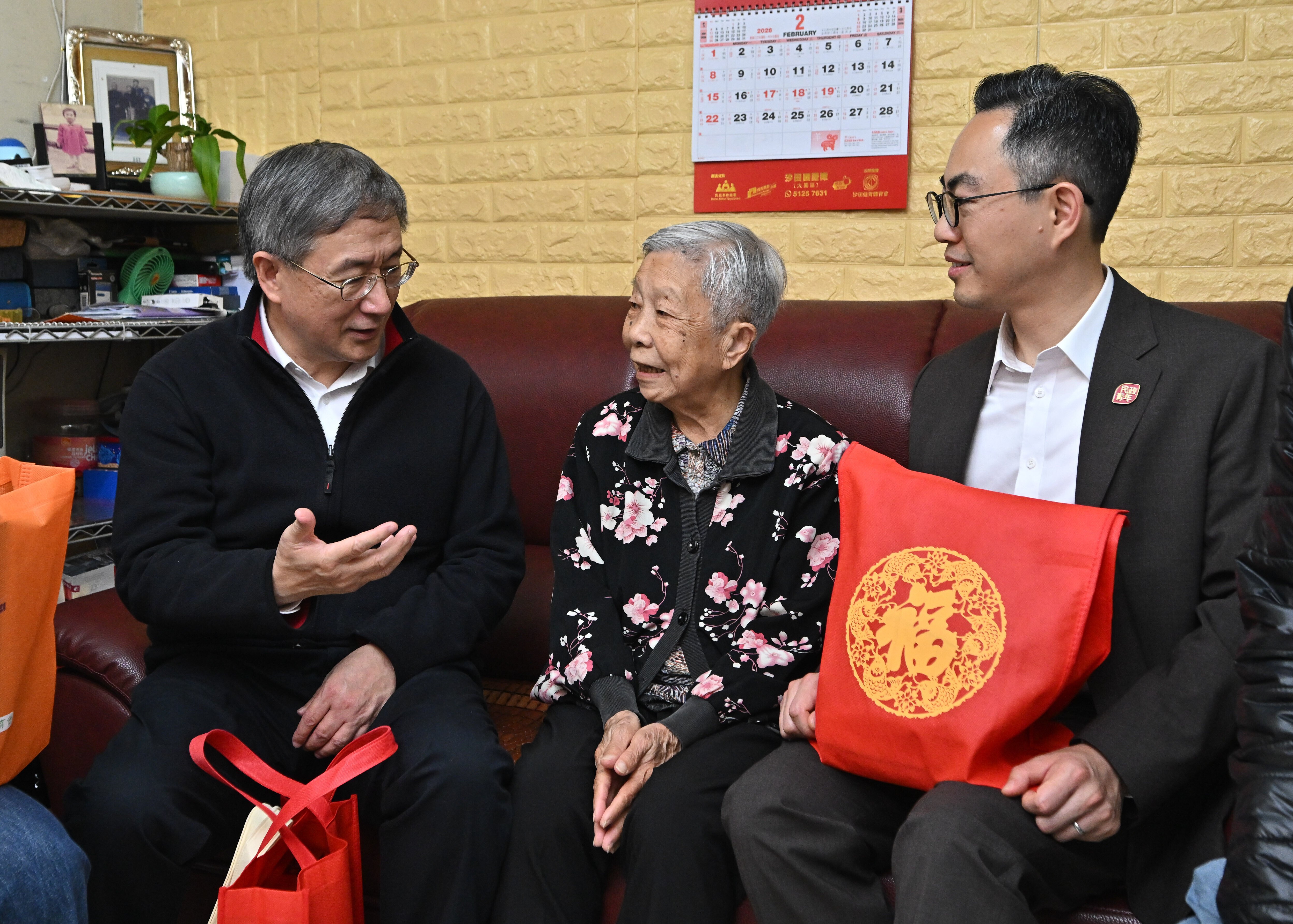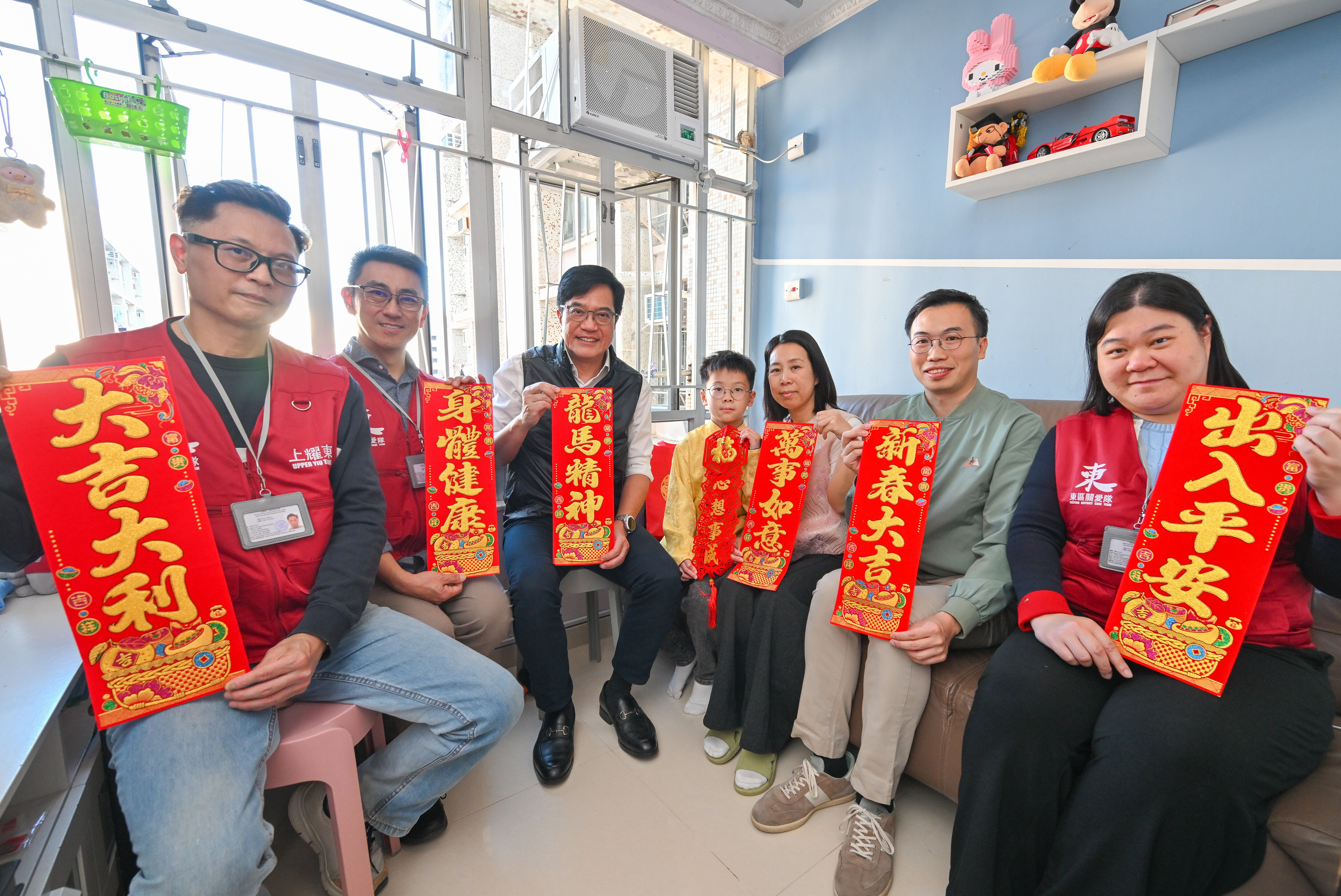 卓永興就在沙田民政事務專員余懷誠陪同下,聯同沙田區區議員和關愛隊代表探訪居於美林邨的基層家庭和獨居長者,與他們閒話家常,並向他們致以節日問候及新年祝頌。而黃偉綸在東區民政事務專員黎旨軒陪同下,聯同東區區議員和關愛隊代表探訪居於耀東邨的年青家庭和獨居長者,聆聽他們的生活點滴,並送上新春祝願。