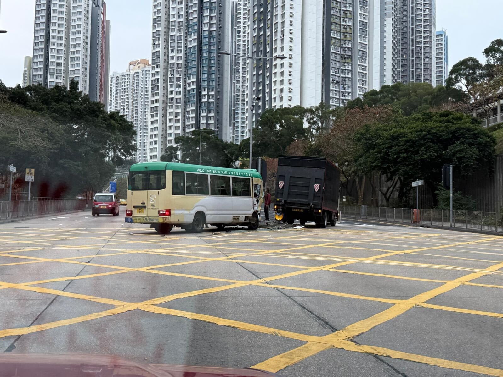 涉事小巴及貨車於新清水灣道和清水灣道交界一個彎位頭尾相撞,貨車車頭受損;現場消息指,小巴沿清水灣道落斜,準備右轉往港鐵彩虹站;貨車則沿新清水灣道快線上斜往順利邨,懷疑貨車司機看錯燈,誤以為是綠燈直駛,導致直撞小巴。