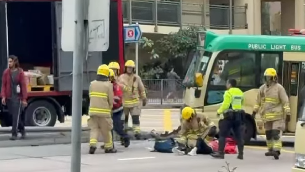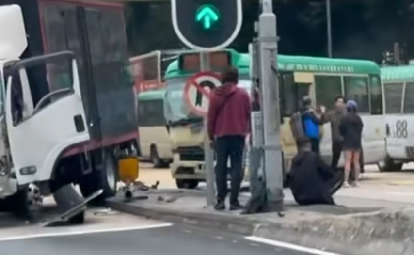 今日(18日)早上7時56分,新清水灣道上斜往順利邨方向,一輛綠色小巴與一輛貨車相撞,釀成5人受傷。包括小巴69歲男司機和4名乘客,其中一名67歲女乘客昏迷不醒,救援人員將她送往伊利沙伯醫院搶救。其餘傷者則輕傷清醒,被送往聯合醫院治理。警方正調查車禍原因。貨車的19歲非華裔男司機涉嫌「危險駕駛」被捕。