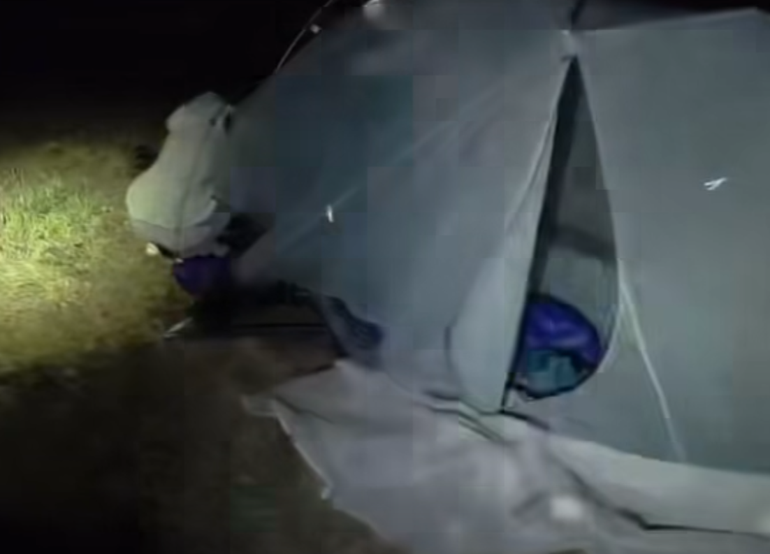 42秒影片可見於晚上時份營地有一隻野豬於帳篷陣內出沒,期間突然衝向一帳篷,將整個帳篷撞起翻倒。片段中可聽到在場男女以普通話驚呼,有男子提醒「掉了甚麼?快看一下」,並指野豬嗅覺靈敏,「帳篷不能放吃的」,有女營友指出自己沒有擺放食物。野豬及後離開。另一名穿露營裝束的女子受驚後慨嘆「怎麼辦?」,其後蹲在地上哭泣,由同行人士安慰。