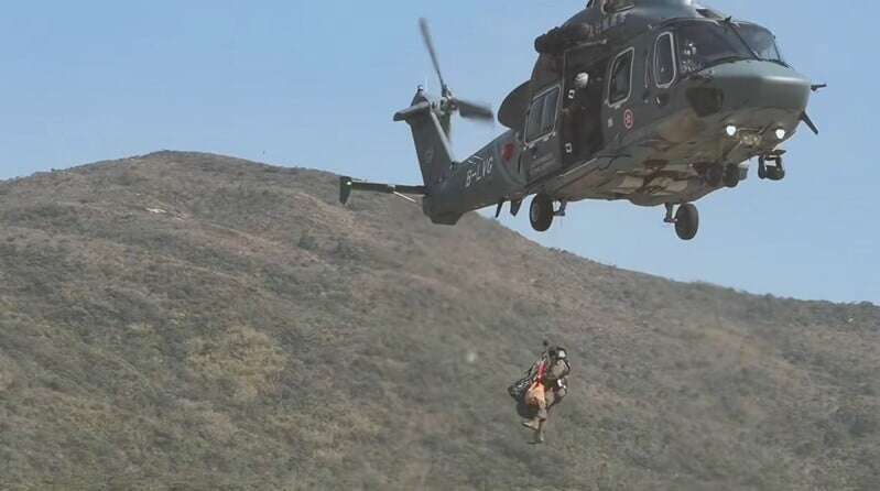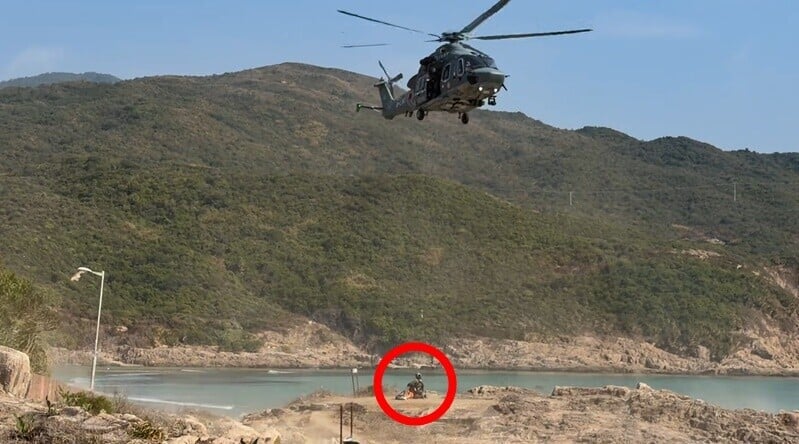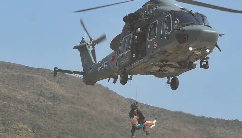 西貢六旬女清潔工跌倒受傷,由直升機救起送院。(小紅書/麦子知光(放飞版))