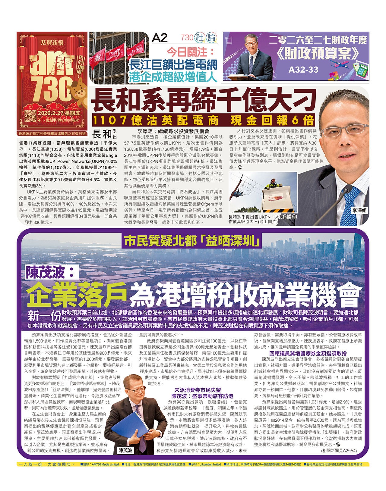 預算案提出多項支援北都發展的措施,包括從外匯基金轉撥1,500億元,用作投資北都等基建項目;向河套香港園區和新田科技城等各注資100億元。陳茂波昨日出席電台節目時表示,本港過往每年用於基建發展約900多億元,未來幾年由於北都發展,需要增至約1,280億元,要發展北都,就要利用市場資源加速北都發展。他續指,要搞好基建、引入企業,讓企業落戶後可發展產業,其後就有稅收。
