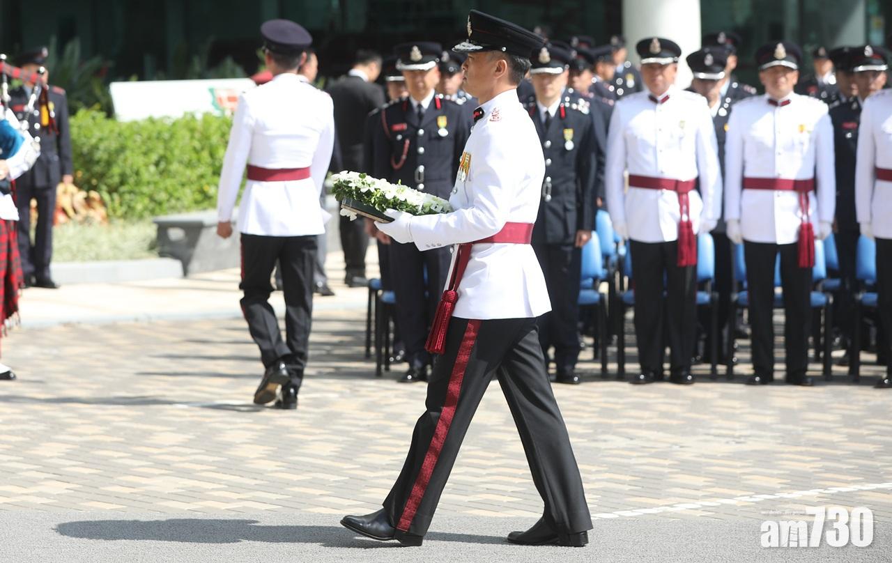 儀式歷時15分鐘,全體人員默哀一分鐘,其後由李獻上花圈,隨後來自各個總區、文職人員及5個工會等代表致送花圈。