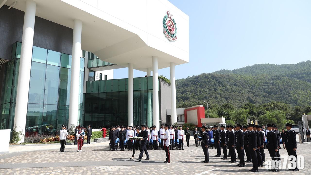 為悼念歷年殉職英雄,消防處今早在消防及救護學院首辦紀念日儀式,先由處長李建日致紀念詞,指今日是意義重大的日子,隨著時代改變,消防員面對危險及挑戰與日俱增,惟同袍不變的是使命感及勇於承擔的精神,即使身陷險境亦不畏縮。