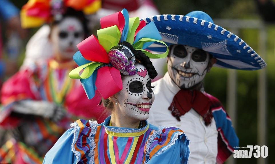 返回 本地 出版:2017-Oct-30 21:00 更新:2017-Oct-30 21:00 墨西哥重陽 骷髏喪屍招搖 分享: 墨西哥城以至美加多個城市,周末紛紛變作猛鬼街,骷髏喪屍招搖過市。這是已有二千年歷史的墨西哥死亡節(Day of the Dead),每年11月1及2日,在世者與在天堂或地獄的先人齊來「共聚」狂歡。今年更要「慶祝」在地震中喪命的400個亡魂。 ADVERTISEMENT激送Monchhichi維港海陸嘉年華入場券!