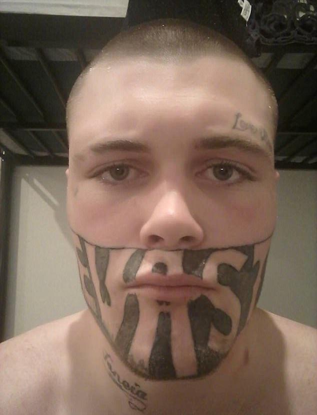 下頷紋有偌大的DEVAST8(摧毀)字樣,對一個青年造成的摧毀力不難想像。新西蘭一名釋囚