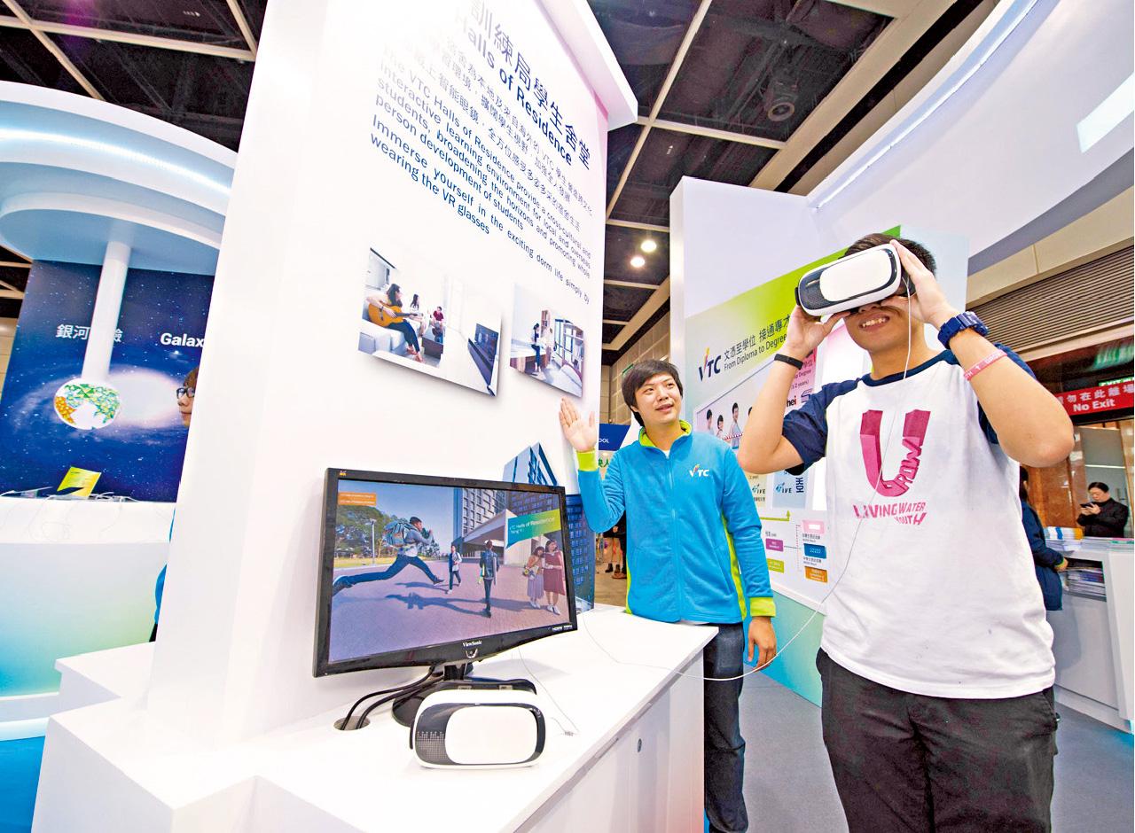 返回 本地 出版:2017-Feb-24 06:00 更新:2017-Feb-24 06:00 圖片新聞:展覽 分享: 貿發局第27屆教育及職業博覽昨起一連四天在灣仔會展舉行,今次共有超過860家,來自22個國家及地區的教育機構、教育顧問公司、專業學會、政府部門、半政府機構及私營機構參加,為市民提供一站式升學、進修和就業資訊。圖為VTC的攤位,參觀人士戴上VR眼鏡,欣賞以360度全景拍攝的學生舍堂面貌 。 ADVERTISEMENT激送Monchhichi維港海陸嘉年華入場券!
