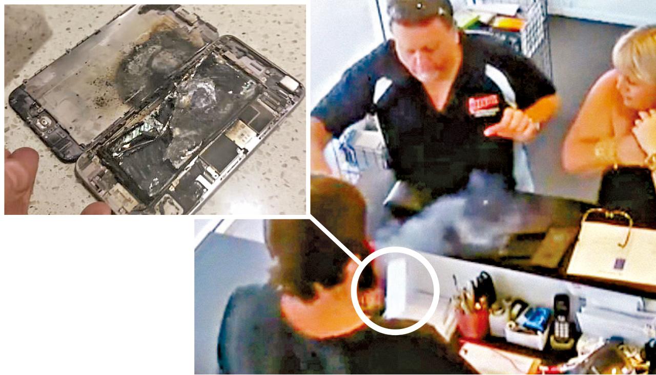 返回 本地 出版:2017-Mar-17 06:00 更新:2017-Mar-17 06:00 網傳待修iPhone6S手中爆炸 分享: 網上流傳片段稱,澳洲昆士蘭省一名男子周一帶同其iPhone6S到維修店檢查時,手機未及交給店員,便在手中冒煙爆炸,嚇得他甩掉手機(右圖),另有照片指最終手機燒焦、屏幕飛脫(左圖)。店方指該顧客稱其iPhone6S屏幕受損、電量流失過快,並說電池為原廠貨,事發前對方只用正常力度按壓屏幕。 ADVERTISEMENT激送Monchhichi維港海陸嘉年華入場券!