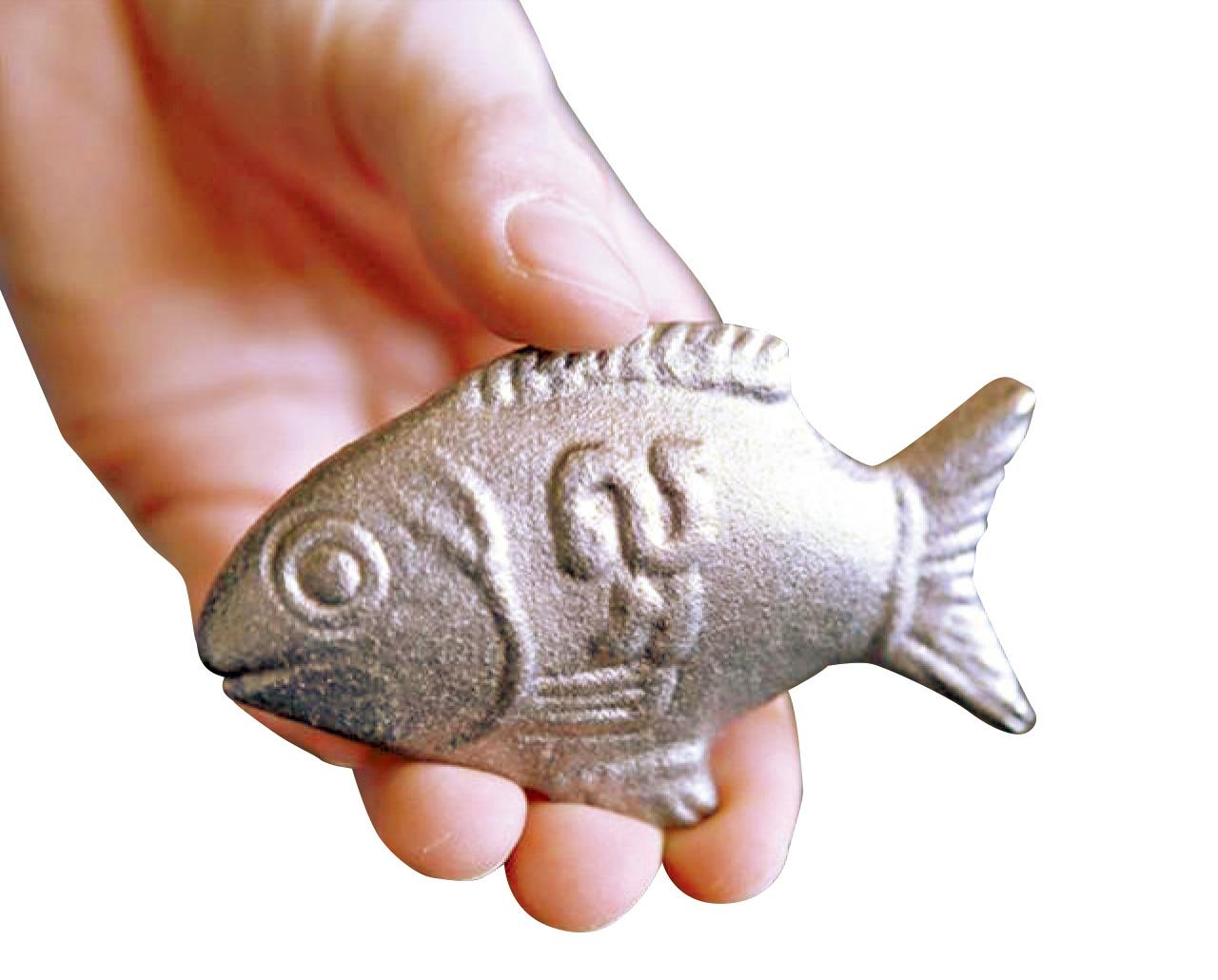 利用汽車廢鐵鑄造的小鐵魚。(互聯網)