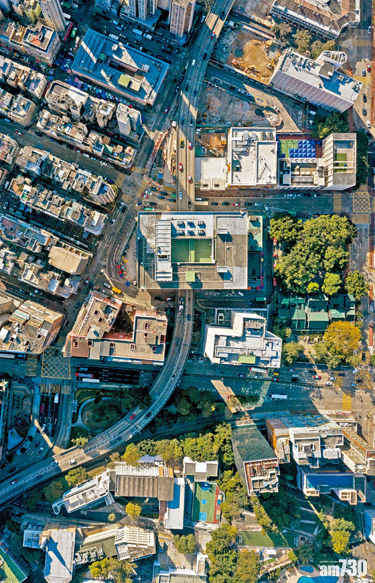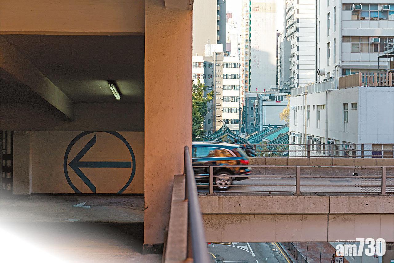 行車天橋貫穿停車場可見建築設計的無限可能。