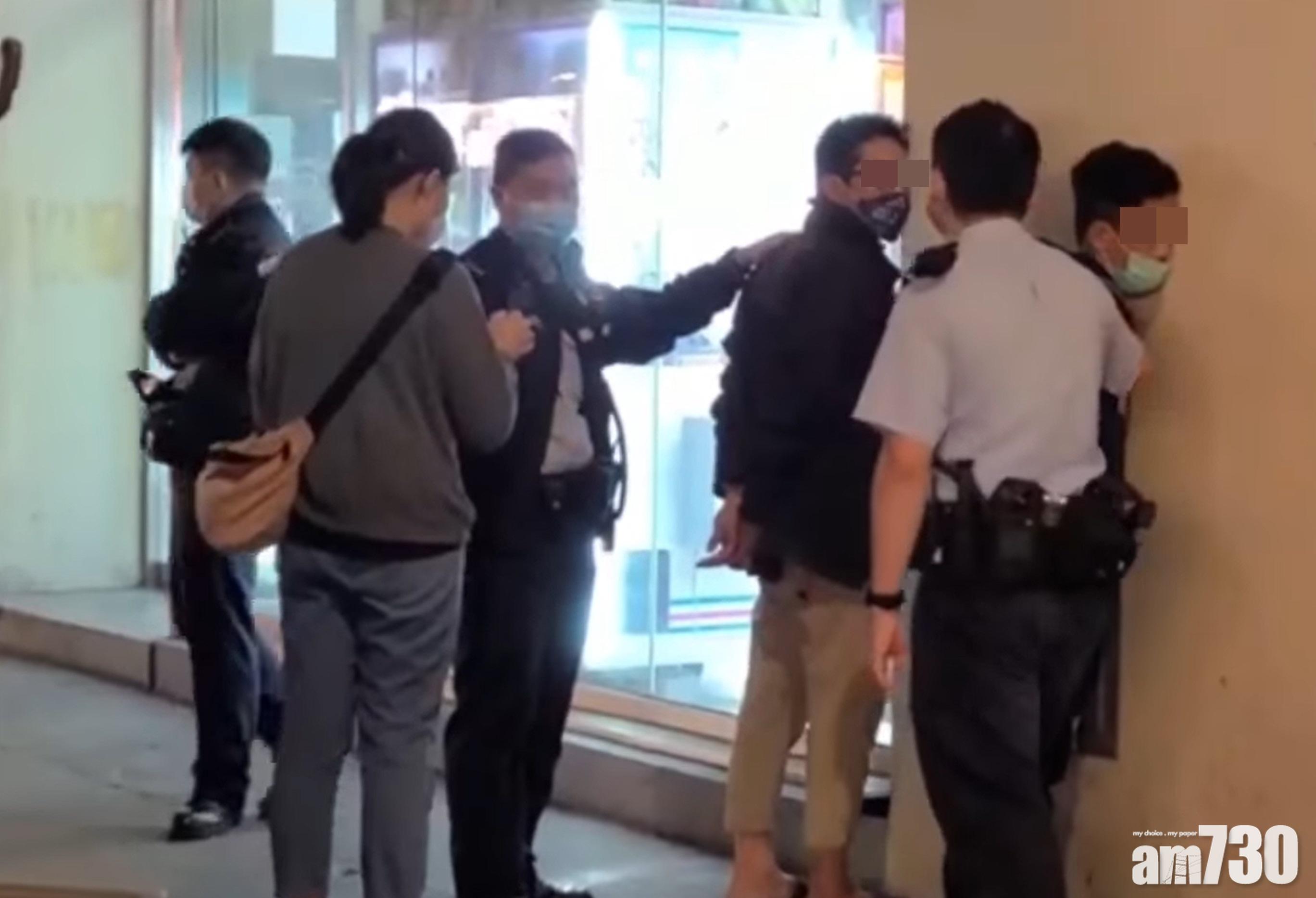 警方在砵蘭街截停「Tempo」與另一名男子,並將兩人押上警車帶走。(全民新聞台fb影片截圖)