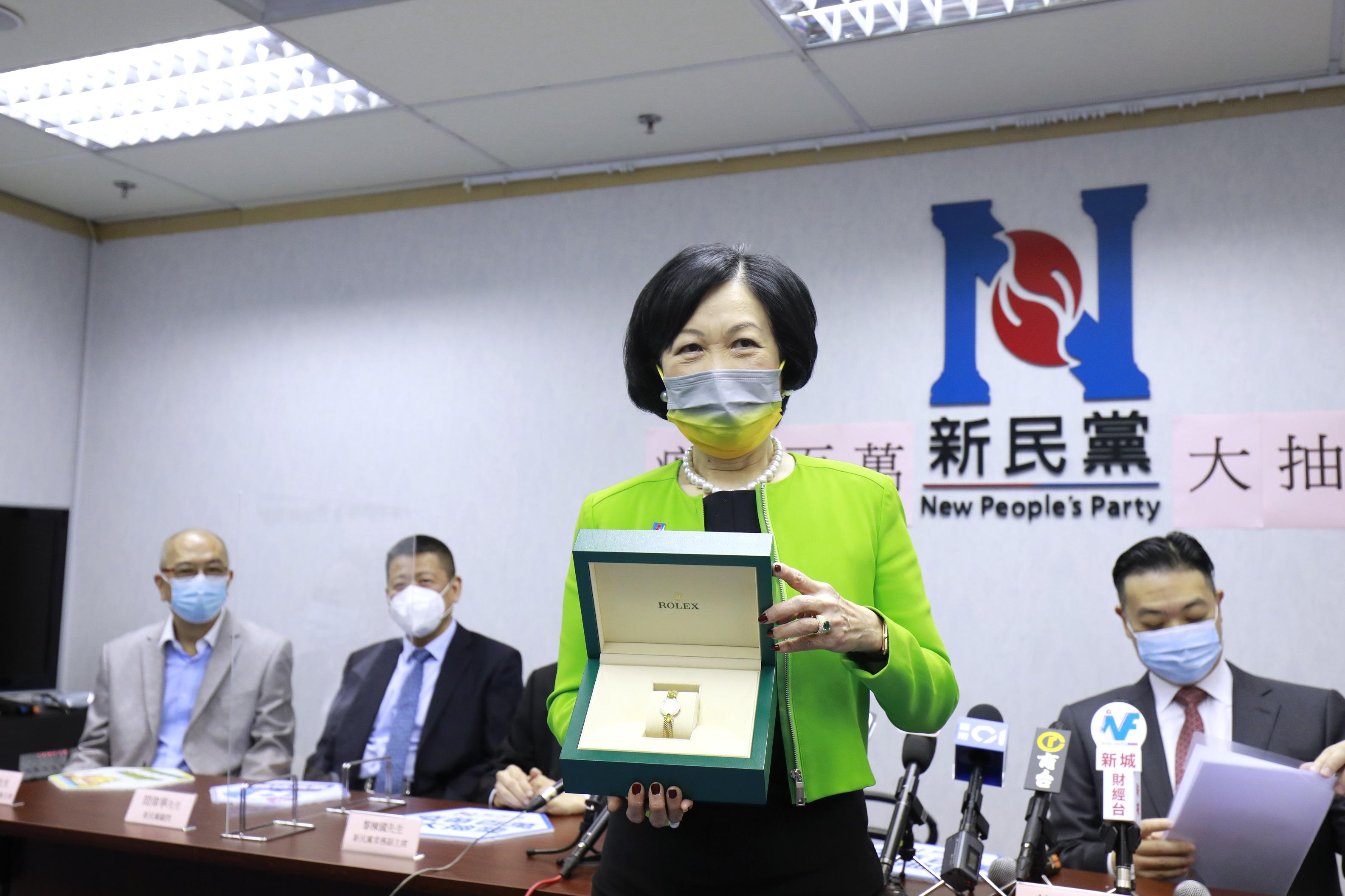 新民黨去年推出疫苗抽獎,主席葉劉淑儀送出愛錶。(資料圖片/林俊源攝)
