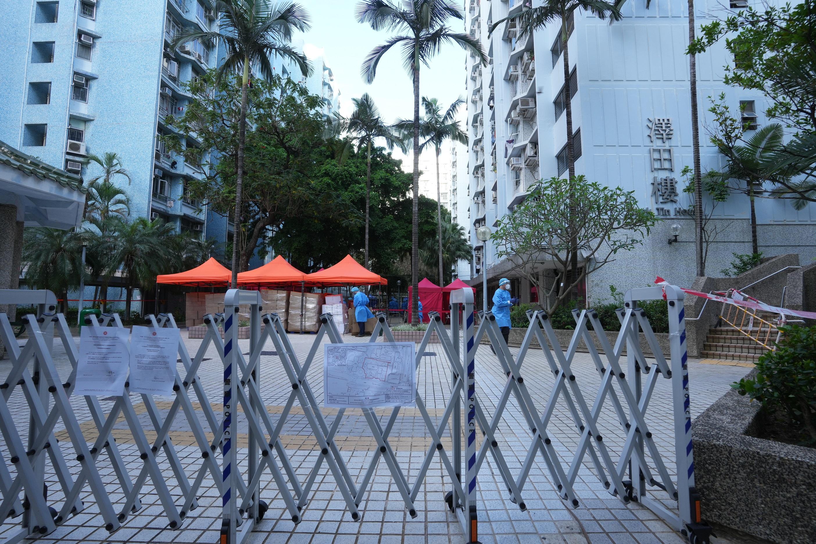 深水埗白田邨澤田樓圍封檢測。(資料圖片/陳奕釗攝)