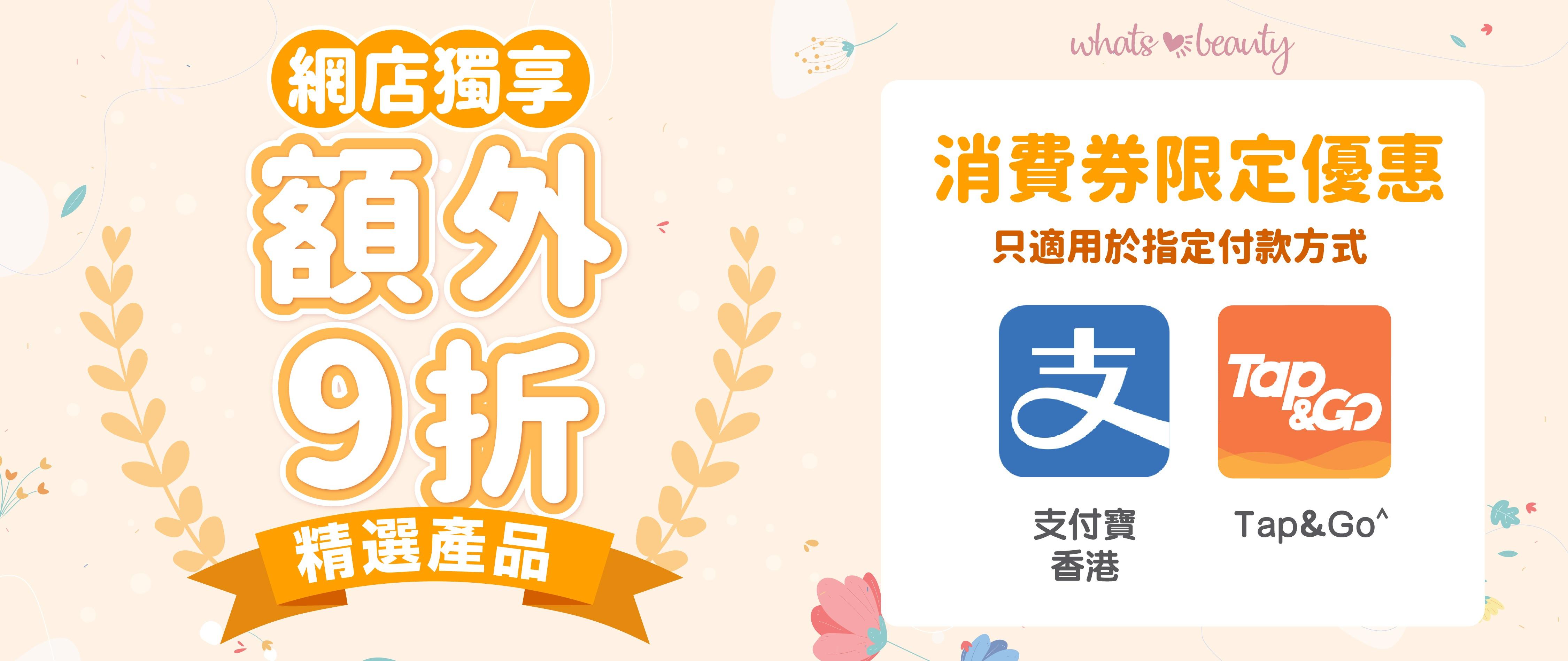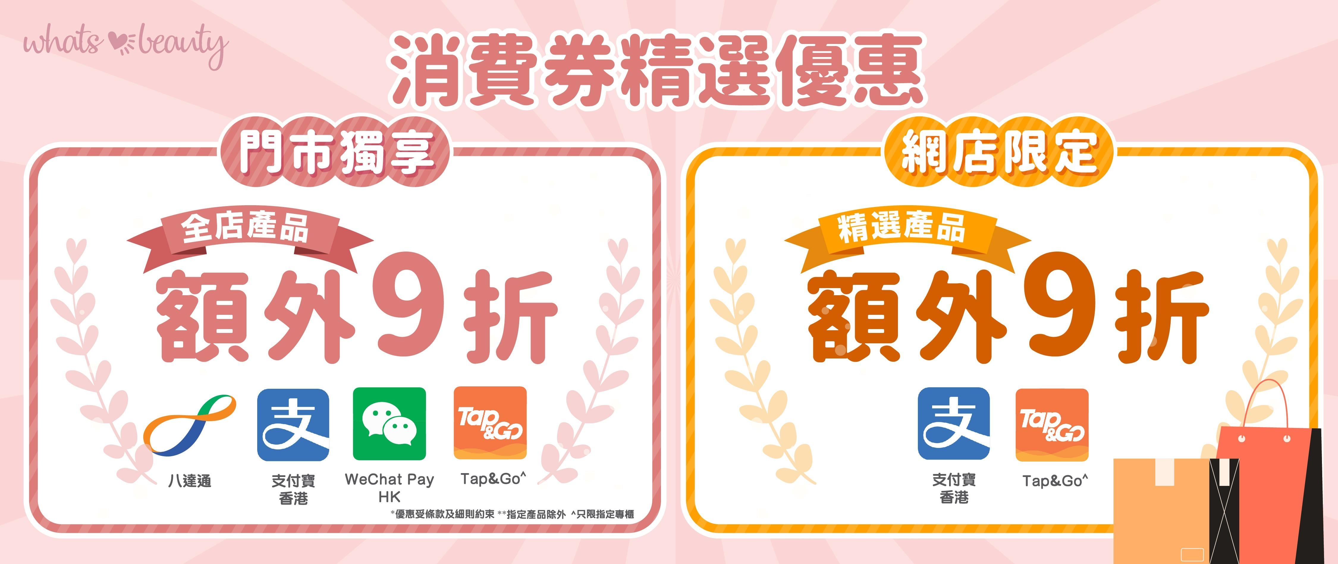 Whats Beauty網店亦精選了多款人氣美容護膚及健康產品,推出「網上消費券購物優惠」: